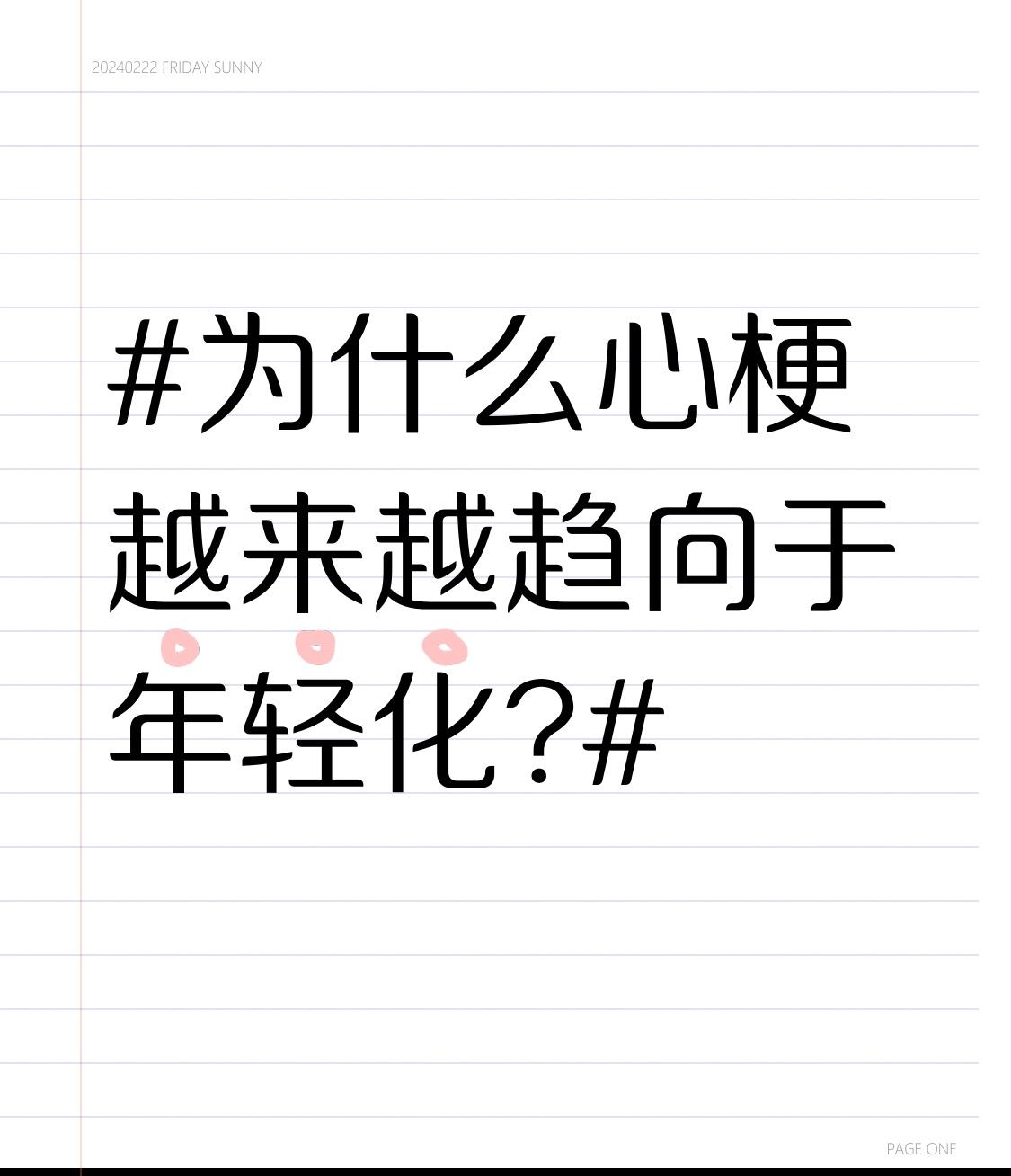 为什么心梗越来越趋向于年轻化? 心梗越来越趋向于年轻化,这情况真让人担忧。现在生活节奏快,年轻人压力大,很多人饮食不规律,天天外卖,尽是油腻、高热量、高盐分的食物。而且缺乏运动,一下班就瘫在沙发上。 吸烟喝酒的年轻人也不少,烟草里的尼古丁等有害物质会让动脉硬化,频繁喝酒会损害心脏肌肉。另外,长期心理压力大,激素水平紊乱,还可能催生过度饮食、吸烟等不良行为。像我认识一朋友,才30岁,天天熬夜加班,抽烟喝酒,前段时间就突发心梗,还好抢救及时。所以,大家真得改善生活习惯,定期体检,降低心梗发病风险。