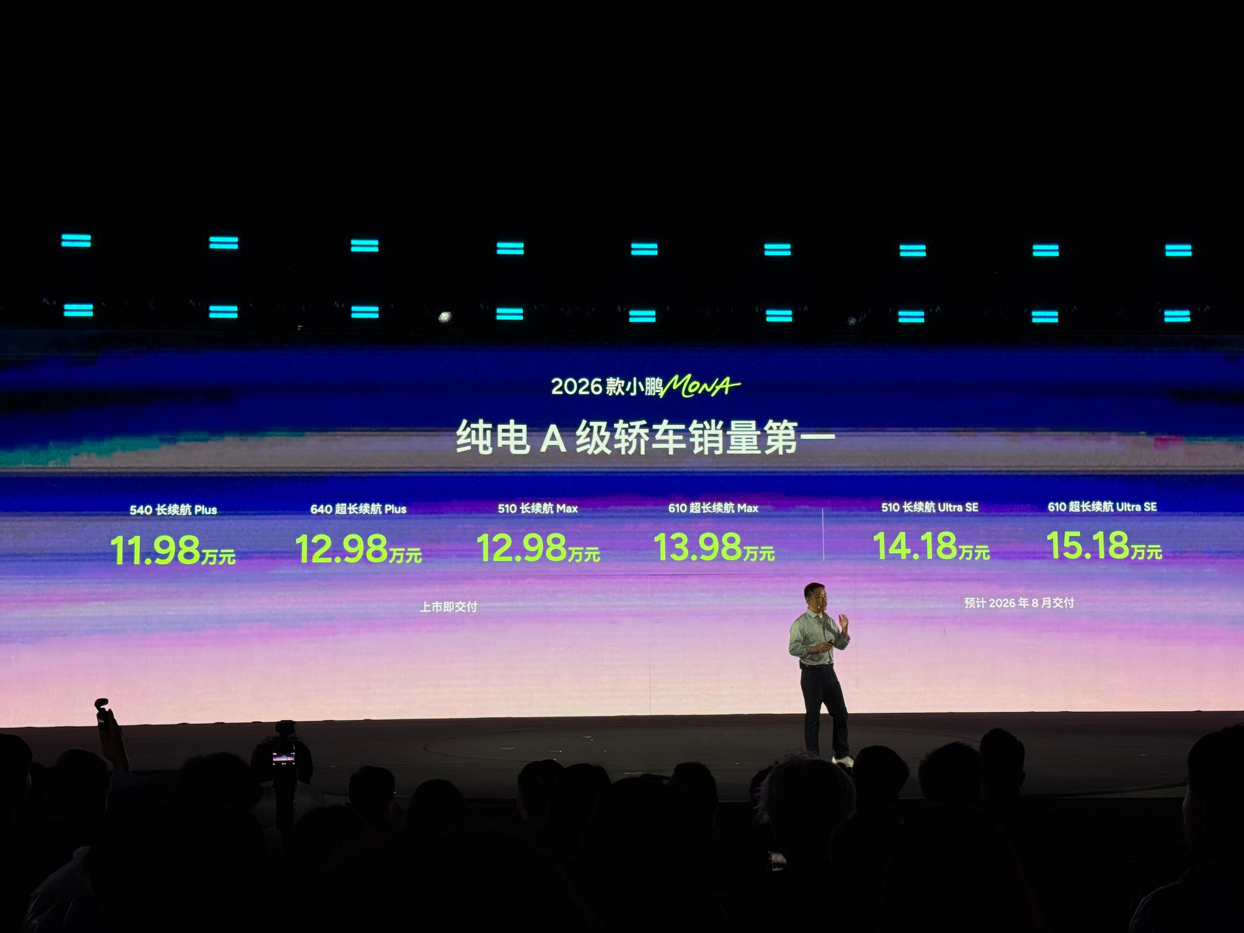 2026款小鹏MONA今日上市540长续航Plus版11.98万元;510长续航Max版、640超长续航Plus版均为12.98万元;610超长续航Max版13.98万元;510长续航Ultra SE 14.18万元;610超长续航Ultra SE 15.18万元。此外,罗兰紫、牛油果绿配色、前排14点云朵按摩座椅、20扬声器+RNC主动降噪,全部限时免费!怎么样?这价格、这诚意顶不顶?!2026款小鹏MONA大大大大大升级