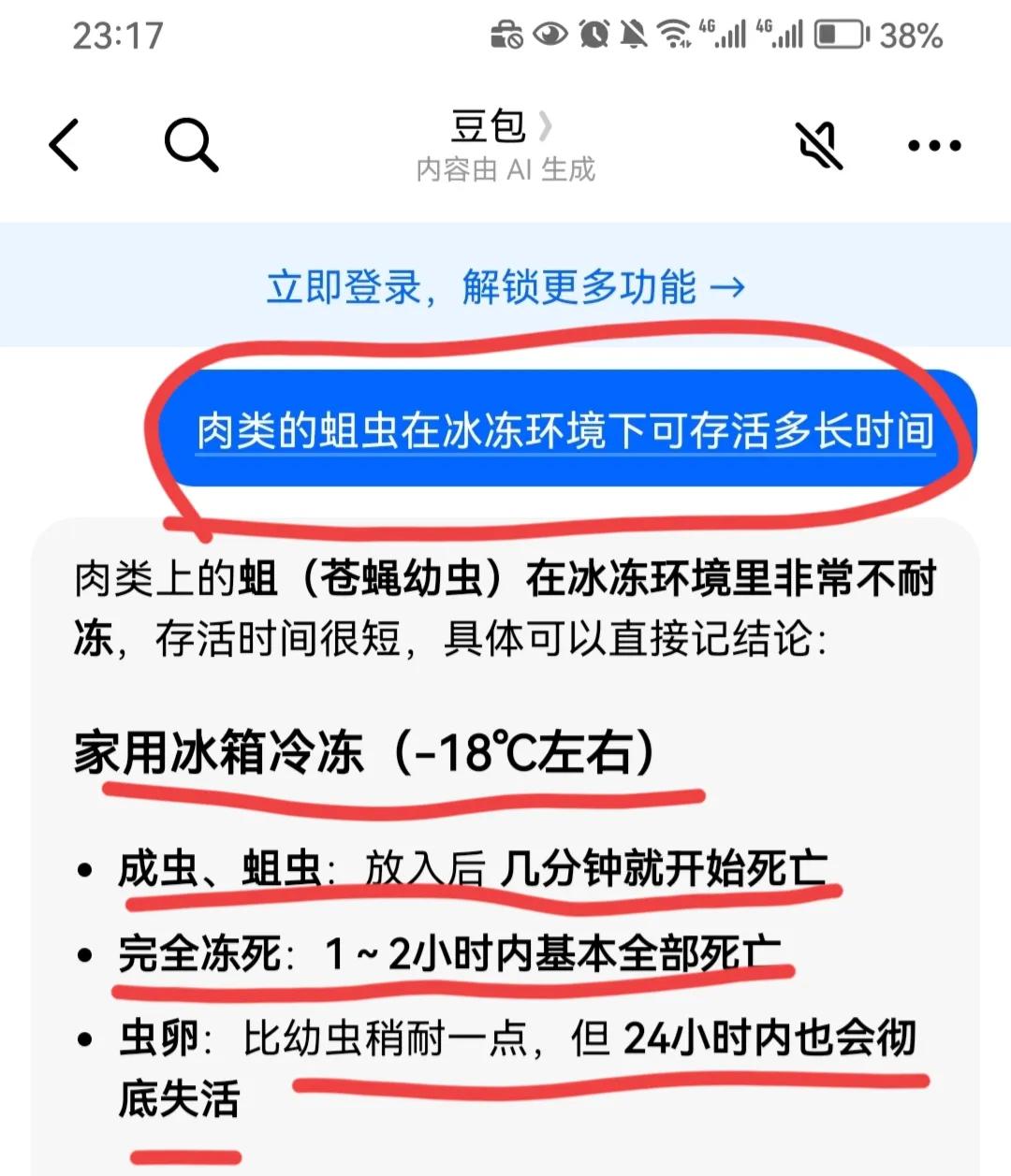 东方甄选回应自营战斧鸡腿“有虫子”问题。 近日有用户发视频反映,其购买的东方甄选战斧鸡腿包装内有虫子在爬动,引起大量网友讨论。 很多网友质疑,全程冰冻的产品且距生产日期已经两个月的冻品,怎么可能还有虫子存活? “绝对是世界奇闻”有网友评论到! 豆包给的答案是:蛆虫进入冰冻条件下几分钟就会开始死亡,2小时内就会全部死亡! 不过,针对该视频,东方甄选售后团队还是给予高度重视,调取了该批次产品的生产全过程的监控视频,排除了该鸡腿有蛆虫进入或产生蛆虫的可能性!且,针对网友质疑加工厂是小作坊的评论,东方甄选也发布了显示生产车间和自动化流水线的生产日记。 值得一提的是,在东方甄选发布了调查结果后,该用户已经删除了相关视频。