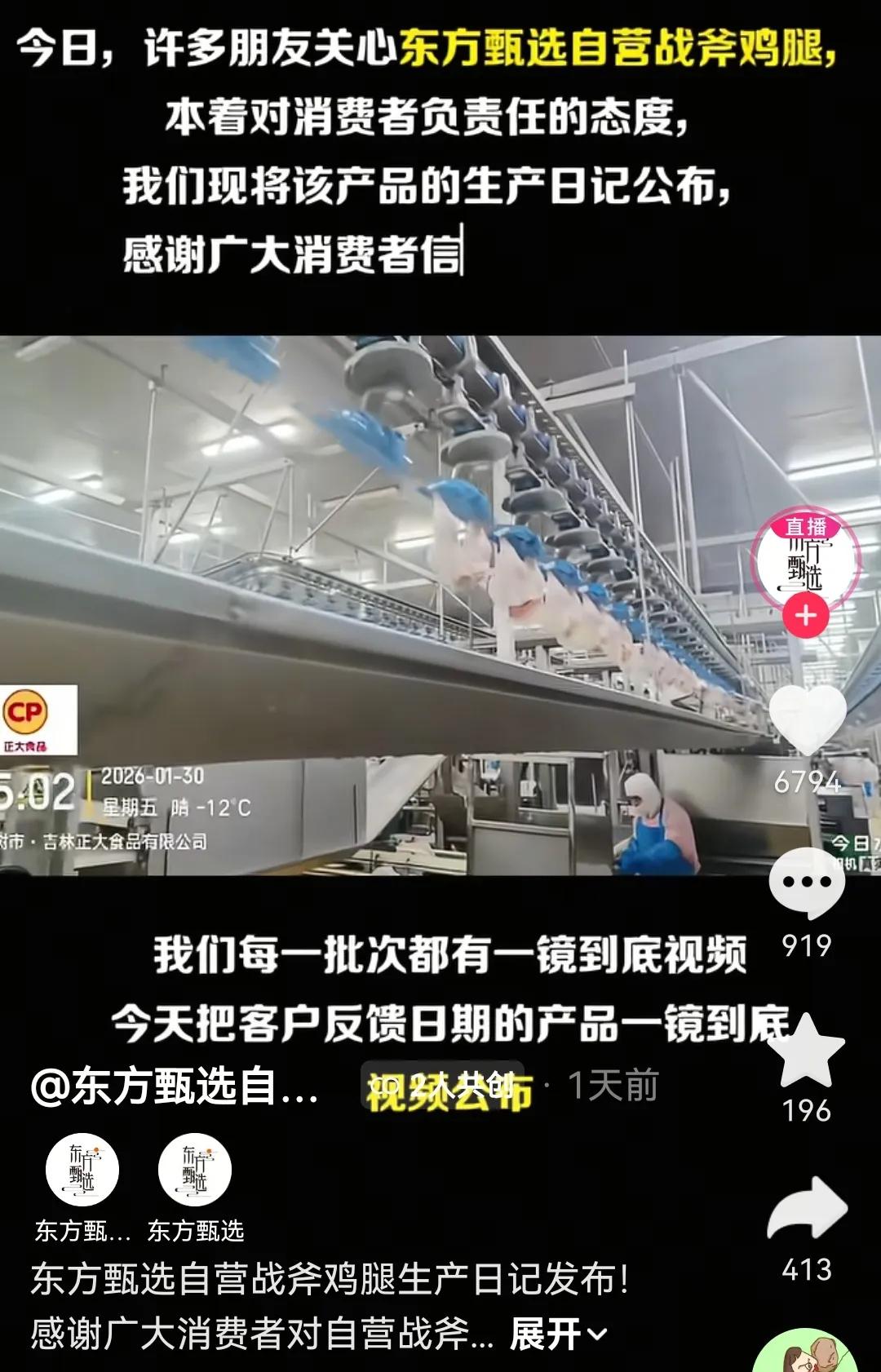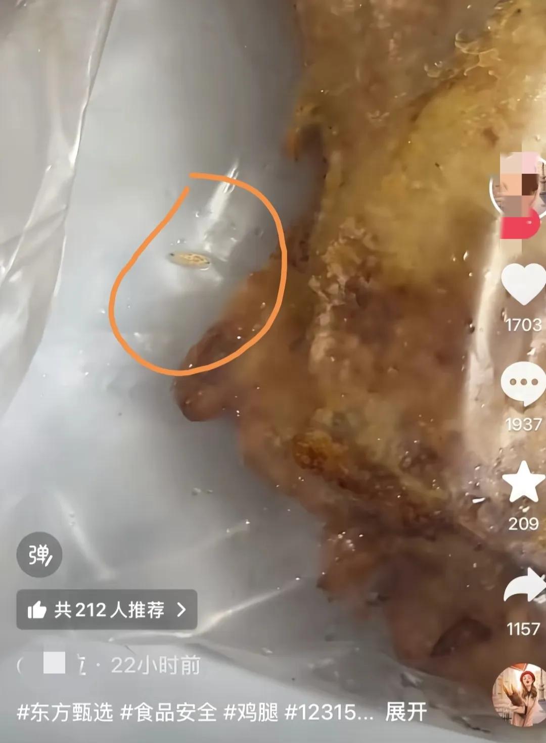 东方甄选回应自营战斧鸡腿“有虫子”问题。 近日有用户发视频反映,其购买的东方甄选