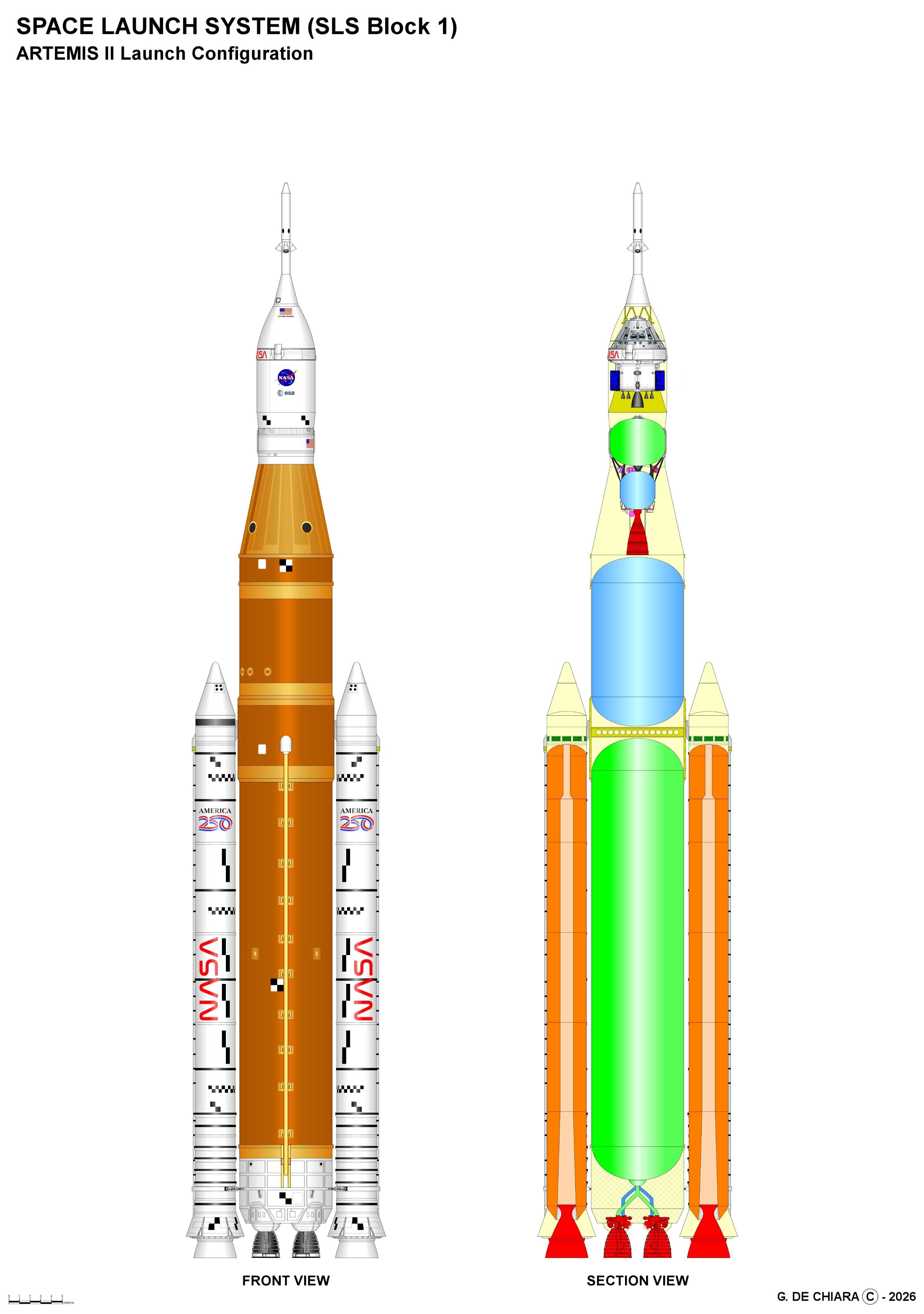 SLS Block 1重型火箭和猎户座载人飞船三视图图源:archipeppe
