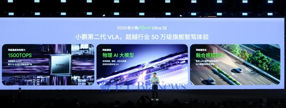 为满足不同用户的智驾需求,新车提供Max版和UltraSE版双算力版本可选,兼顾高阶性能与实用体验,覆盖全场景出行。其中,UltraSE版配备双图灵AI芯片,有效算力高达1500TOPS,搭载小鹏第二代VLA,这是一套面向L4时代的物理世界模型,不仅安心丝滑,全场景都能开,而且像老司机一样高效。而Max版搭载单颗图灵AI芯片,有效算力达750TOPS,目前搭载小鹏第一代VLA,2026年第三季度将开启小鹏第二代VLA蒸馏版上车,在驾驶体验、运行帧率、响应时延与稳定性等维度,完整保留小鹏第二代VLA的核心能力。