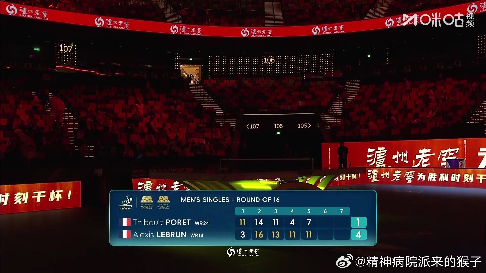 艾利克斯勒布伦4比1泊雷特(-3,14,11,4,7)晋级2026年澳门乒乓球世