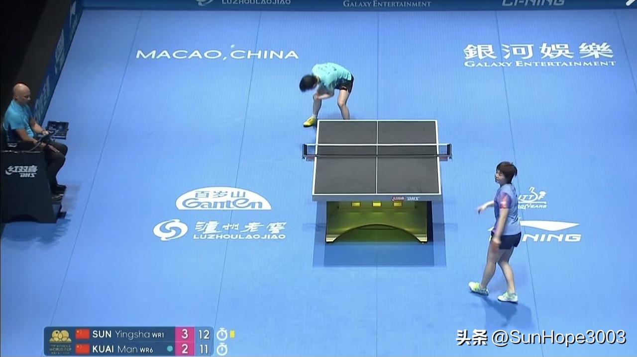 孙颖莎4-2战胜蒯曼,晋级到澳门世界杯八强, 和蒯曼打了70多分钟。 两个人实在是太熟悉了,蒯曼今天的球基本上都撞进莎莎的怀里,往怀里打。 两边线路的调动,角度也特别刁钻, 打出球的那一刻,整个人身体都是扭曲的。 莎莎今天特别想要,和重庆冠军赛不一样, 第六局在4:7落后的情况下, 加快了速度和质量, 两个人打得很精彩,10平,11平, 莎莎13:11赢下比赛。 中间两个人都去换了一件比赛服, 打得很激烈。 恭喜莎莎晋级,好好休息,继续加油。