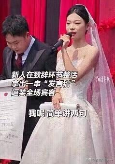 笑不活了!河北一对新人结婚到了新人致辞环节,新娘说:我简单说两句,大家本以为也就几句话的事,不料,两位新人竟先后甩出超长“发言稿”,婚礼主持都惊呆了:“你们这是让吃席,还是不让吃席?” 台下宾客本来都已经坐得端正,等着听完客套话就动筷子,谁能想到这“简单两句”直接玩出了新花样。 新娘话音刚落,手一扬,几米长的卷轴式发言稿“唰”地展开,铺了大半个舞台,连头尾都差点没找着。现场瞬间爆发出哄堂大笑,原本庄重的仪式感,一秒切换成了喜剧现场。 新郎站在旁边,本来还端着新郎的体面,看着新娘这阵仗,直接笑弯了腰。等新娘好不容易捋顺稿子,他也不甘示弱,跟着喊了一句“我也简单说两句”,紧接着从身后掏出了同款超长卷轴,两个长卷往台上一摆,主持人站在中间,看看左边,看看右边,脸上的职业微笑直接僵住,憋了半天说出那句灵魂拷问。 新娘定了定神,对着长卷一本正经开口,开篇就说“四个感谢,一个祝福”。从感谢双方父母的养育和支持,到感谢亲朋好友远道而来的祝福,再到感谢身边朋友一路的陪伴,连婚礼当天帮忙的工作人员都没落下。每一段都写得清清楚楚,没有空泛的套话,全是实打实的心意。 新郎的稿子也不遑多让,开头第一句就逗乐了全场:“首先感谢我的妻子今天嫁给我,让我能来参加这场婚礼,更荣幸的是,新郎是我。” 他顺着稿子,细数了两人从相识到相恋的点点滴滴,从第一次见面的拘谨,到后来一起打拼的日子,再到决定携手一生的瞬间,每一句都带着真诚,惹得台下长辈频频点头,年轻人笑着笑着就红了眼。 原本五分钟就能走完的流程,硬生生拖了半个多小时。台下宾客一开始还在笑,后来慢慢安静下来,认真听着两人的心里话。 有人拿着手机全程录像,有人跟着点头感慨,原本催着吃席的心思,早就抛到了脑后。没人觉得耽误时间,反而觉得这才是婚礼最该有的样子,不是走流程的客套,是把藏在心里的话,认认真真说给所有人听。 拍摄者事后说,特别支持年轻人用这种轻松的方式办婚礼,整场仪式氛围欢快又融洽,没有尴尬的煽情,没有生硬的环节,全是两个人的真心。 这段视频传到网上,直接火遍全网,网友们纷纷留言,说这才是婚礼该有的样子,比那些千篇一律的套话有意思多了,甚至有人直接说,要办婚礼的赶紧抄作业。 其实大家烦的从来不是婚礼致辞,烦的是那些空洞、冗长、不走心的套话,是明明没什么好说的,非要硬撑着讲半小时,耽误所有人吃席。 这对新人的聪明之处就在于,用一种幽默的反差感,把大家最反感的环节,变成了全场最受欢迎的亮点。嘴上说着“简单两句”,实则用最长的稿子,说最真的话,既逗乐了全场,又把自己的心意完完整整传递了出去。 现在很多年轻人办婚礼,都在摆脱传统流程的束缚,不再追求千篇一律的排场,而是更注重自己的感受,更在意能不能留下真正难忘的回忆。有人选择旅行结婚,有人选择草坪婚礼,有人在婚礼上玩起了脱口秀,这对新人用超长发言稿的方式,本质上也是在给婚礼注入属于自己的灵魂。 婚礼从来不是办给别人看的,是办给自己的。不用刻意煽情,不用强行感动,用自己喜欢的方式,把自己的故事讲给爱的人听,让在场的每一个人都能感受到这份幸福,这才是婚礼最珍贵的意义。 这对新人没有用夸张的表演博眼球,只是用一种幽默又真诚的方式,完成了属于他们的仪式,这份松弛感和真诚,才是最打动人的地方。 很多人说,现在的婚礼越来越没意思,全是流程,全是给长辈看的排场。可这对新人用实际行动证明,婚礼可以很有趣,可以很真诚,可以完全属于自己。不用被传统束缚,不用被别人的期待绑架,只要两个人心意相通,用自己喜欢的方式,就是最好的婚礼。 这件事也给很多准备结婚的年轻人提了个醒,婚礼不用千篇一律,不用墨守成规,找到属于自己的表达方式,才能让这场仪式真正成为一辈子的回忆。 那些藏在长卷里的文字,不是为了搞笑,是两个人对这段感情最郑重的承诺,是对所有爱他们的人最真诚的感谢。 各位读者你们怎么看?欢迎在评论区讨论。
