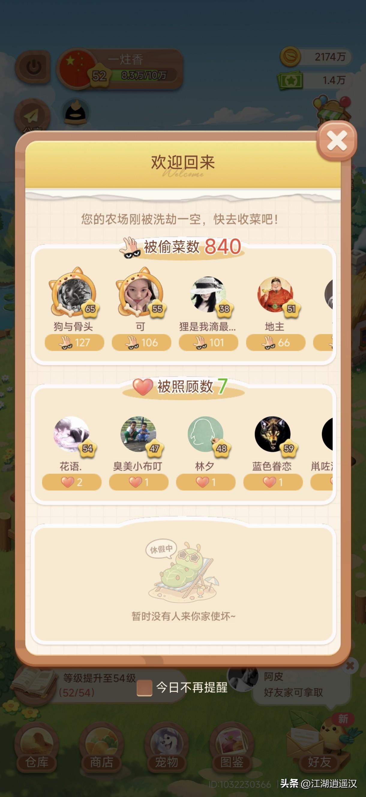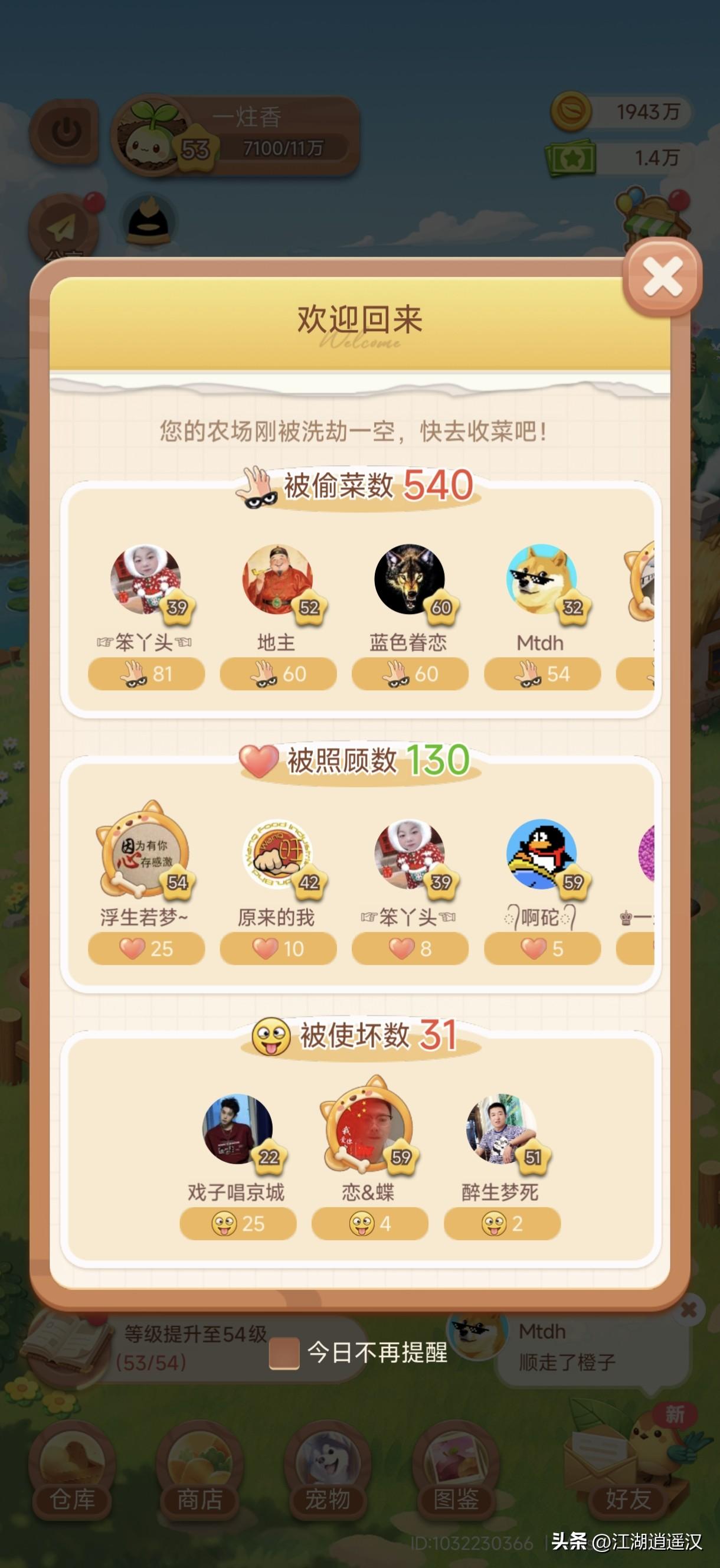 让偷菜来的更猛烈些吧!敞开农场大门欢迎各位老友来串门!不管是1980的“战绩”还是1288的收成,尽管下手!辛苦种下去的菜,就是给好友们留的专属福利。不用客气,尽管来顺,闹钟我已经定好,随时准备好迎战新一轮的“洗劫”,求个痛快,快来我家打卡!记录我的2026