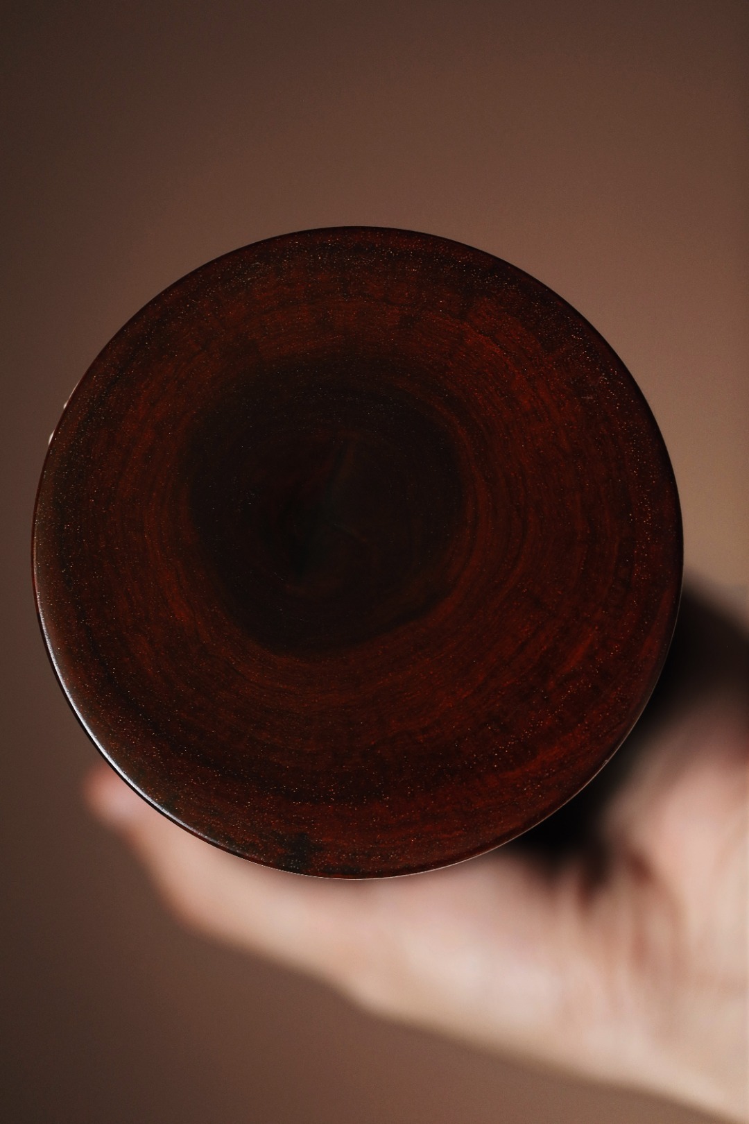 直径10.8cm 高11.8cm 重590g 小叶紫檀【玉堂富贵】笔筒