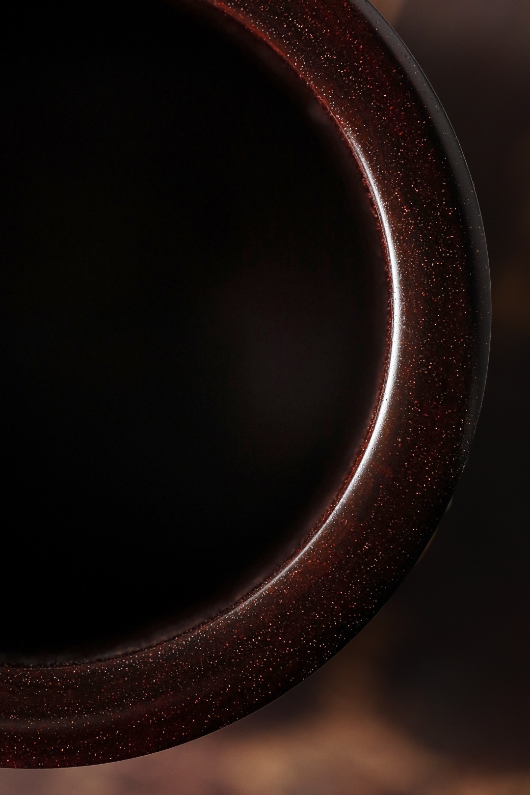 择取带金星老料一木挖掏,外壁以百宝饰玉堂富贵图,画面生机盎然,颇有情致。不失为一件案头佳作。