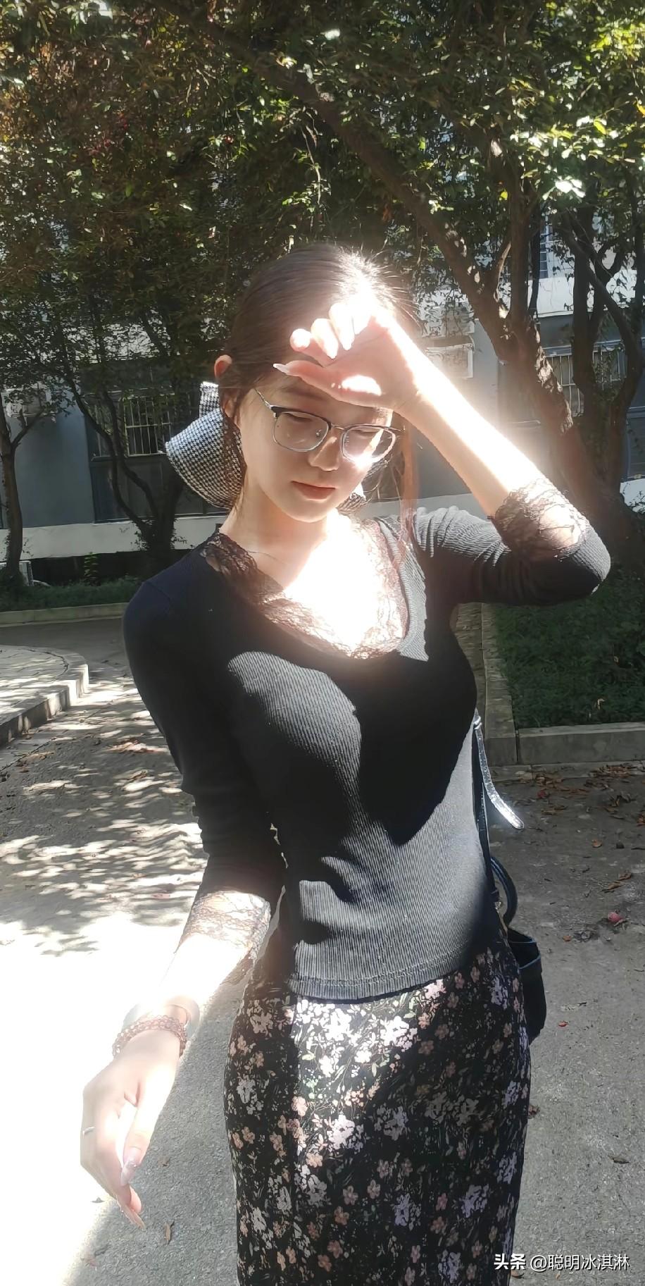 优雅黑裙与印花长裙的完美结合,搭配复古眼镜,尽显都市女性魅力!