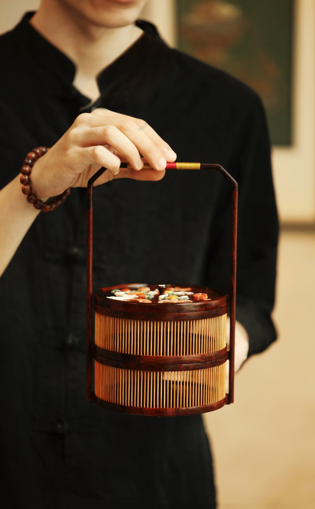 紫檀x百宝嵌【福寿双全】提篮