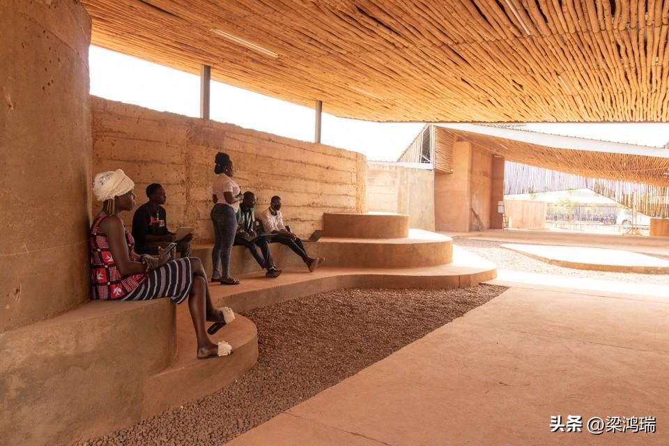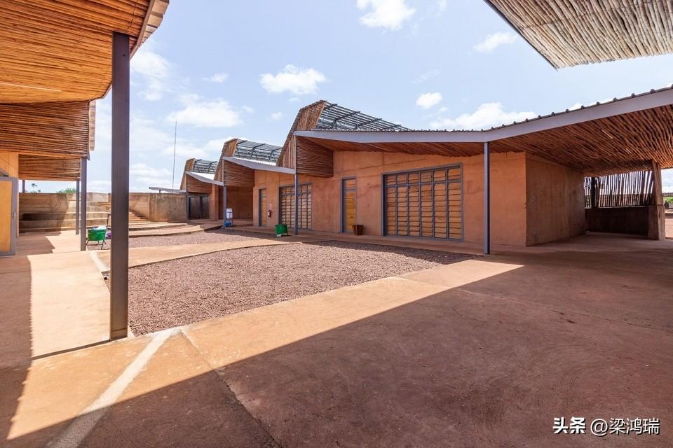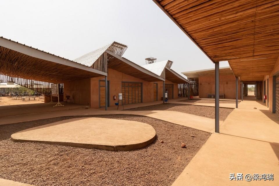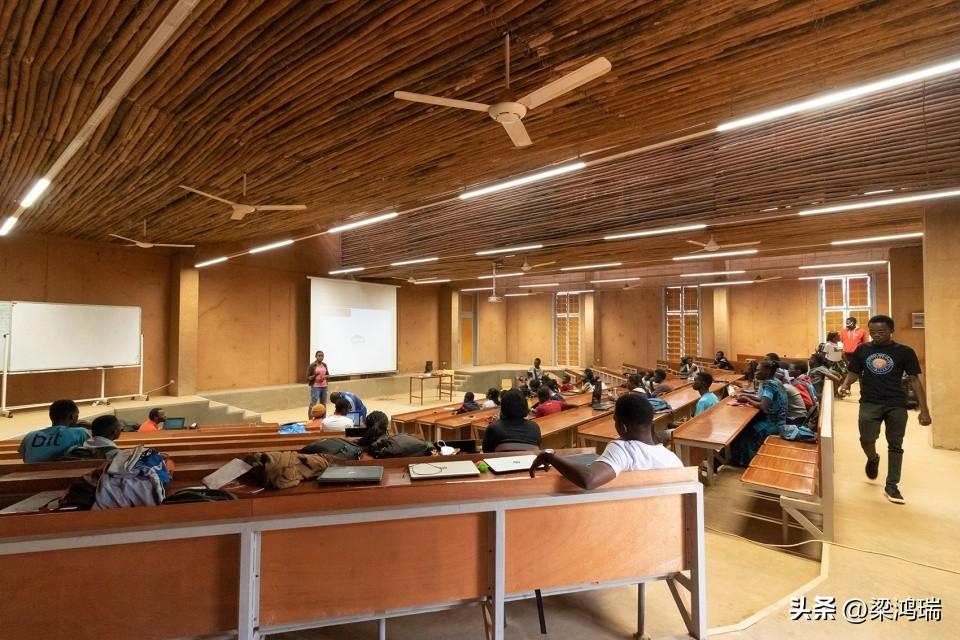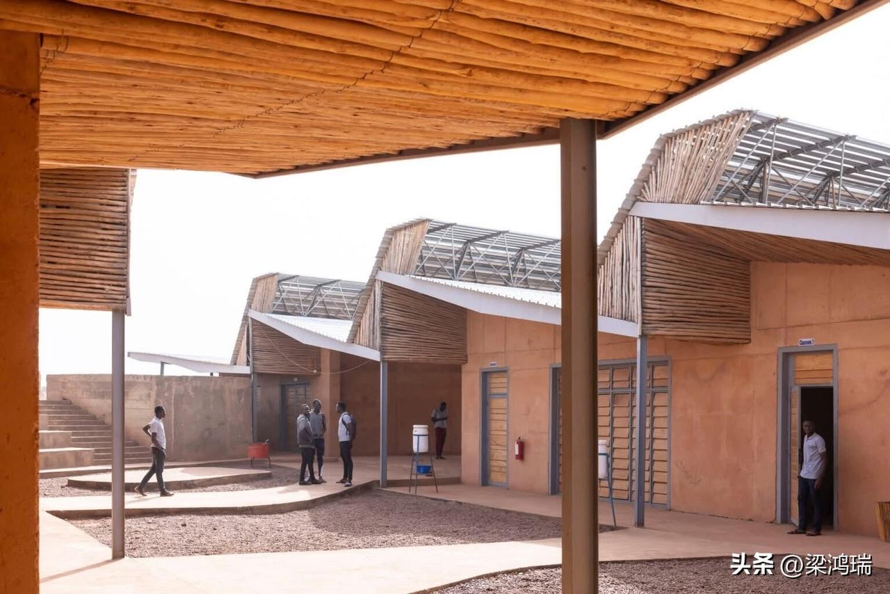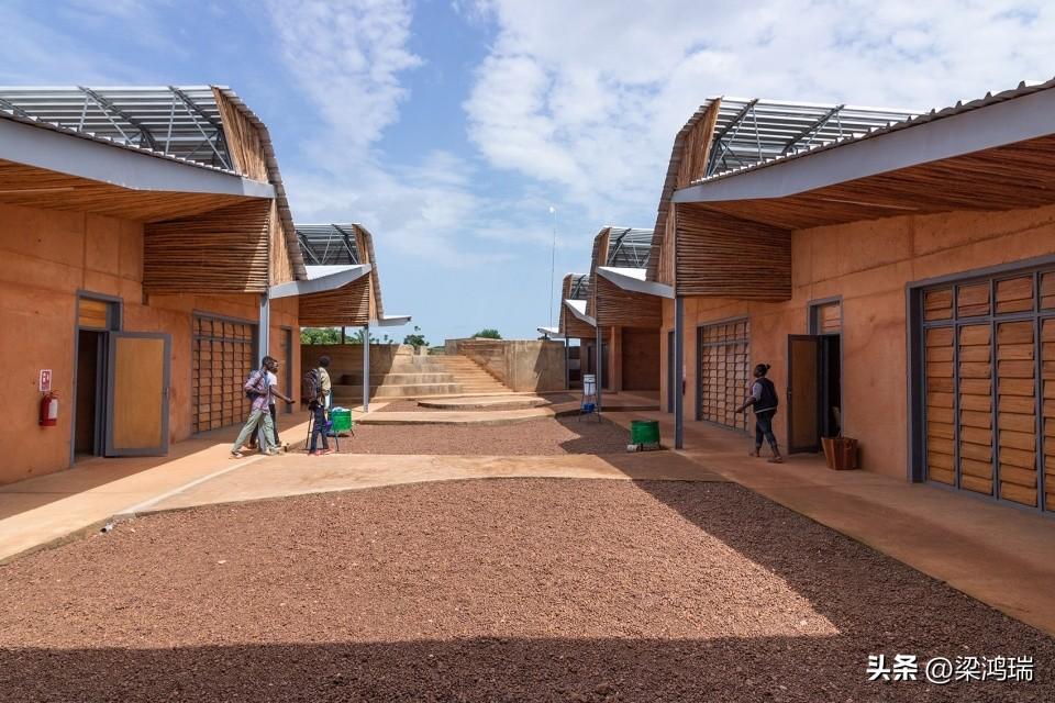 布基纳法索是世界上最炎热的国家之一,但 布基纳理工学院的500 多名学生却在完全舒适的温度下学习,无需空调。 这所学校厚厚的黏土墙吸收热量,而高架钢结构屋顶则将热量散发出去。桉木天花板、当地劳动力、雨水收集系统,所有能利用的资源都来自当地原有的条件。 这是一座采用适合当地气候和需求的技术建造的技术研究所。西方称之为“低技术”,而非洲人则称之为顺应气候,而非与之对抗。 布基纳理工学院(Burkina Institute of Technology, BIT)由 2022 年普利兹克奖得主迪埃贝多·弗朗西斯·凯雷(Diébédo Francis Kéré)创立的 Kéré Architecture 事务所设计。该项目位于布基纳法索的库杜古(Koudougou),是一座旨在通过低成本、可持续设计提升当地高等教育环境的现代化校园。 核心设计特点 地域性材料运用:建筑主体采用当地常见的粘土(粘土砖)和红土石建造。这种材料不仅取材方便,且具有极佳的热惰性,能够吸收白天的热量,保持室内凉爽。 创新的“双层屋顶”系统: 浮动金属屋顶:大跨度的金属屋顶像一把巨大的遮阳伞,“漂浮”在建筑上方,防止阳光直射墙体。 自然通风斜屋顶:内层屋顶设有特殊的通风孔,利用物理气流压差(烟囱效应),使室内热空气自然向上排出,无需空调即可显著降温。 景观与防洪设计:针对当地严重的洪涝问题,凯雷在校园内设计了分级景观和集水池,将多余的雨水引导至地下蓄水层,既解决了排涝问题,又为校园绿化提供了水源。 重复性模块化布局:校舍采用模块化设计,这种结构不仅便于施工期间的本地化参与,也为学校未来的分期扩建提供了灵活性。