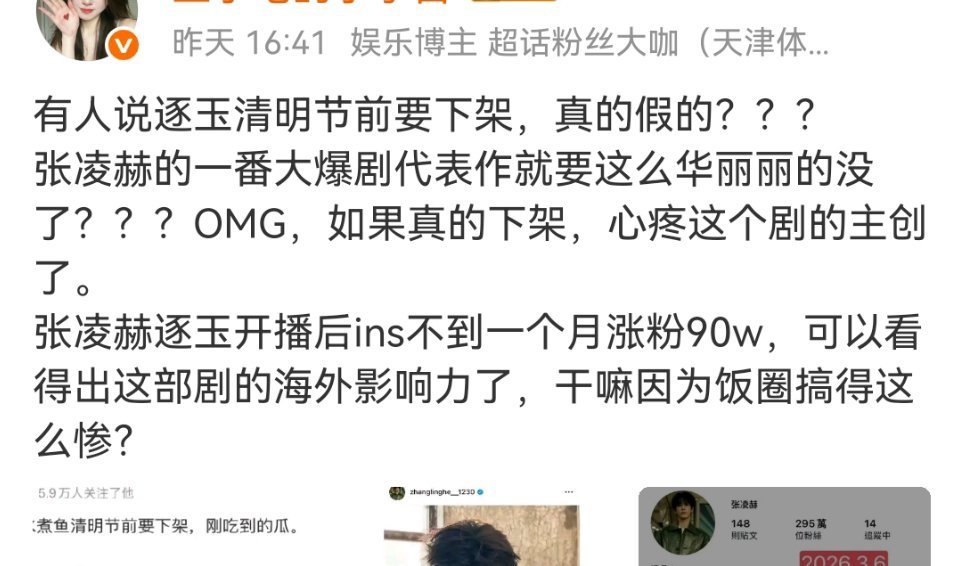 这是通稿吗?逐玉清明节前下架这个瓜,怎么有股子预制洗白的味道,是不是要上个下架的热搜,然后没下架,再来个逐玉没下架的热搜,以此证明这剧“没问题”。 这粉底液将军洗不白。