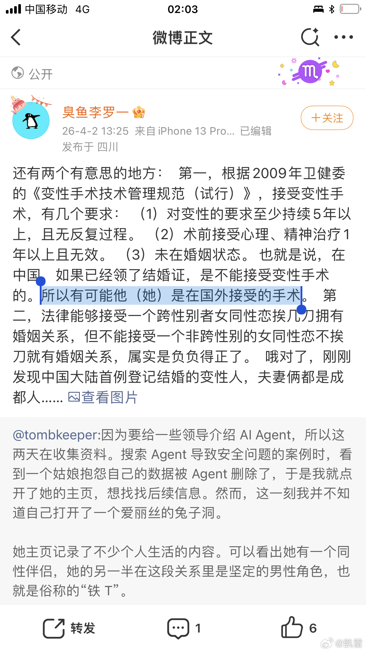 非常家庭,估计国外手术,国内领证,非常偶合,祝福!