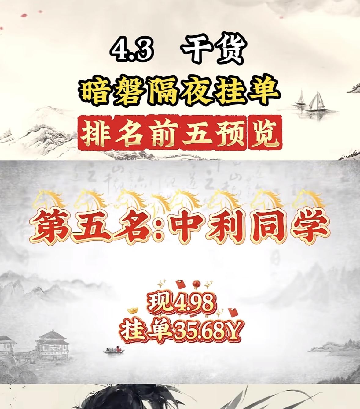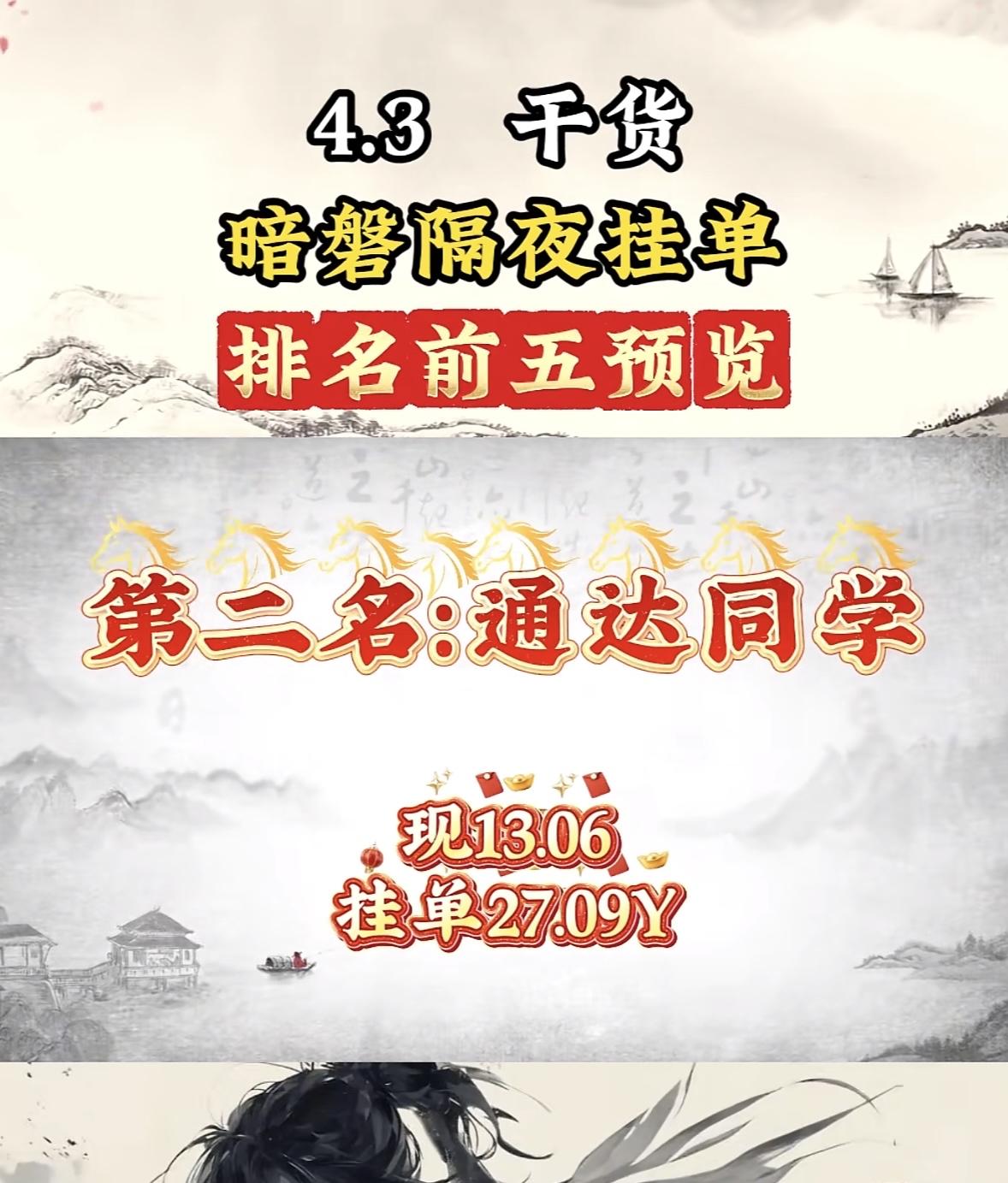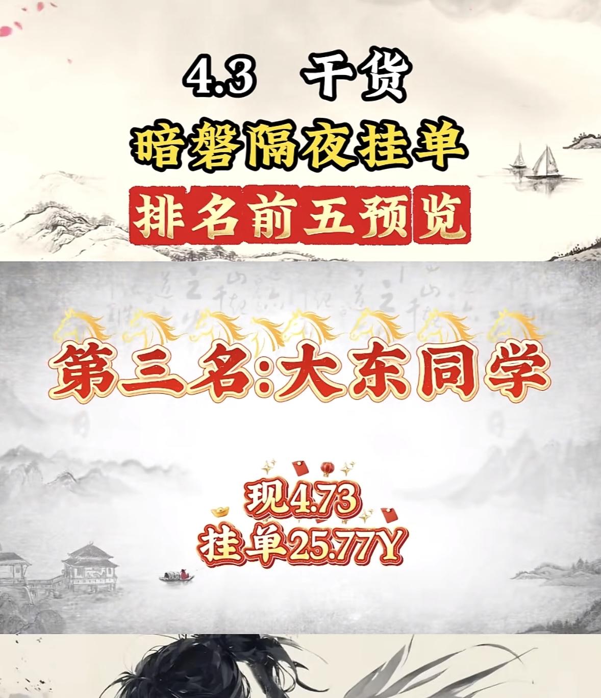 4月3日周五暗盘隔夜挂单排行榜公布