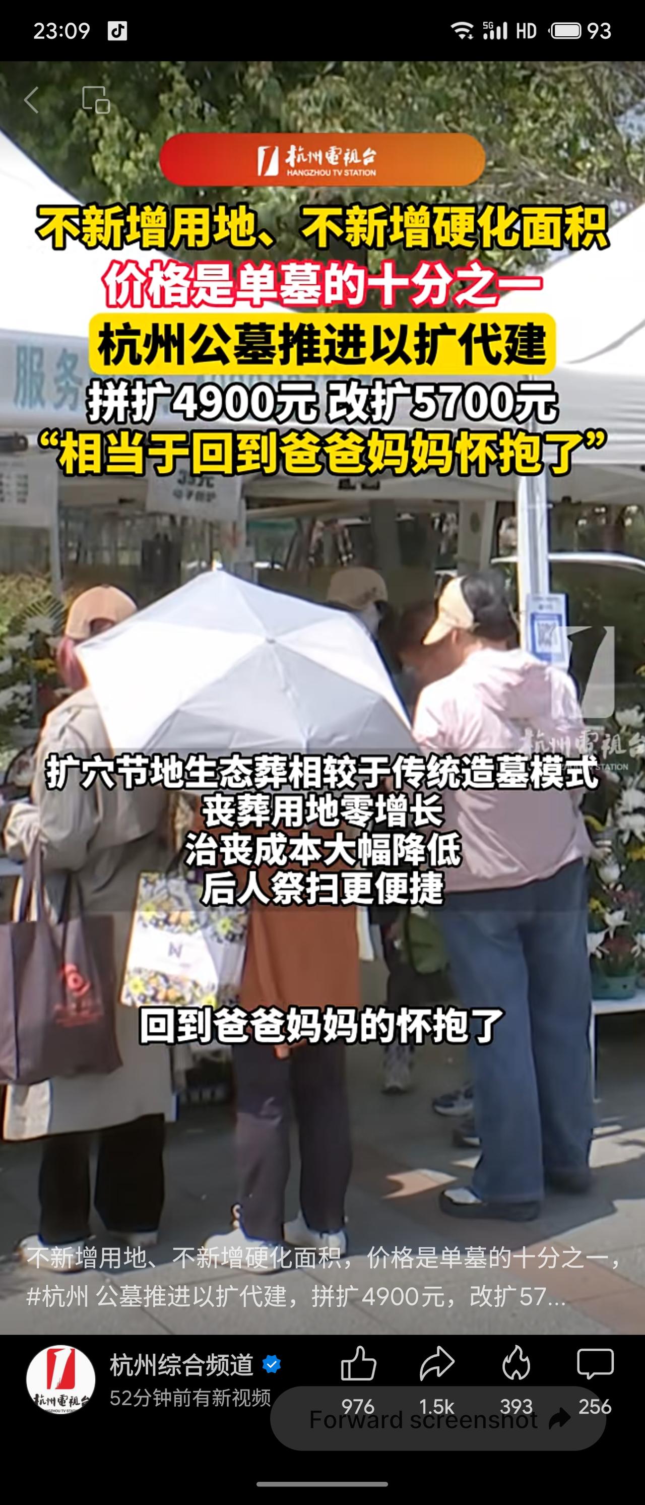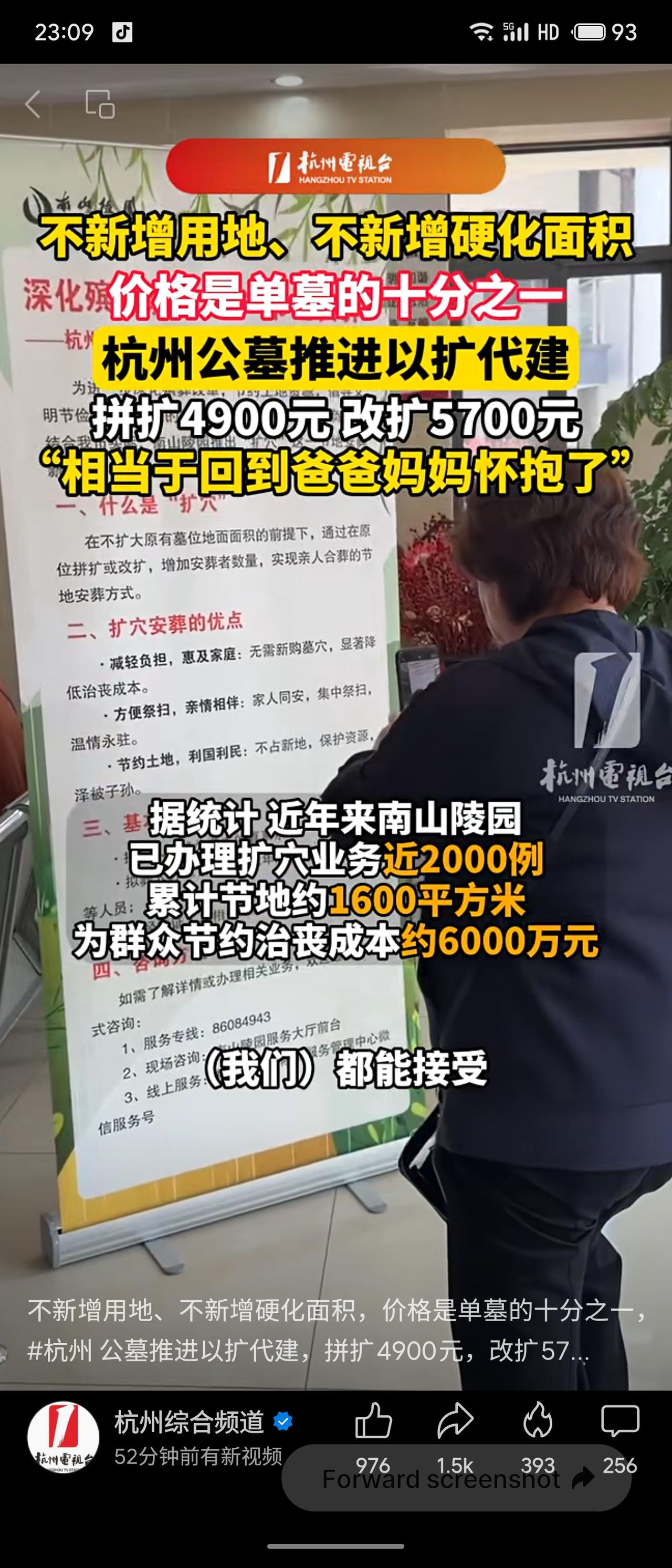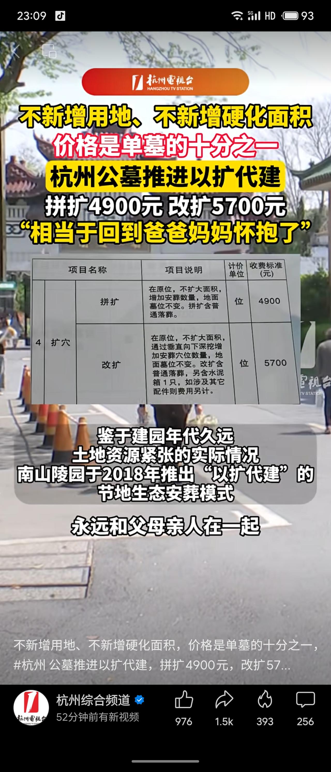 杭州公墓推出“以扩代建”生态葬:不新增用地,价格仅为单墓十分之一(拼扩4900元、改扩5700元),通过原位扩容实现亲人合葬。此举既大幅降低丧葬成本、节约土地资源,又满足“与父母在一起”的情感需求,是集约便民、温情环保的殡葬改革良策。