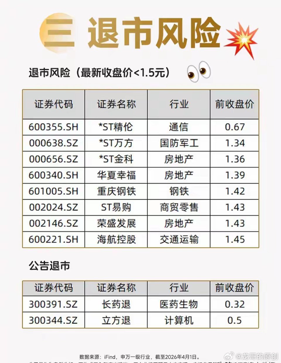 ⚠️ 一句话提醒:退市坚决不碰,暴雷、高位、高质押、减持、解禁全是坑避开这些,才能少亏多赚!