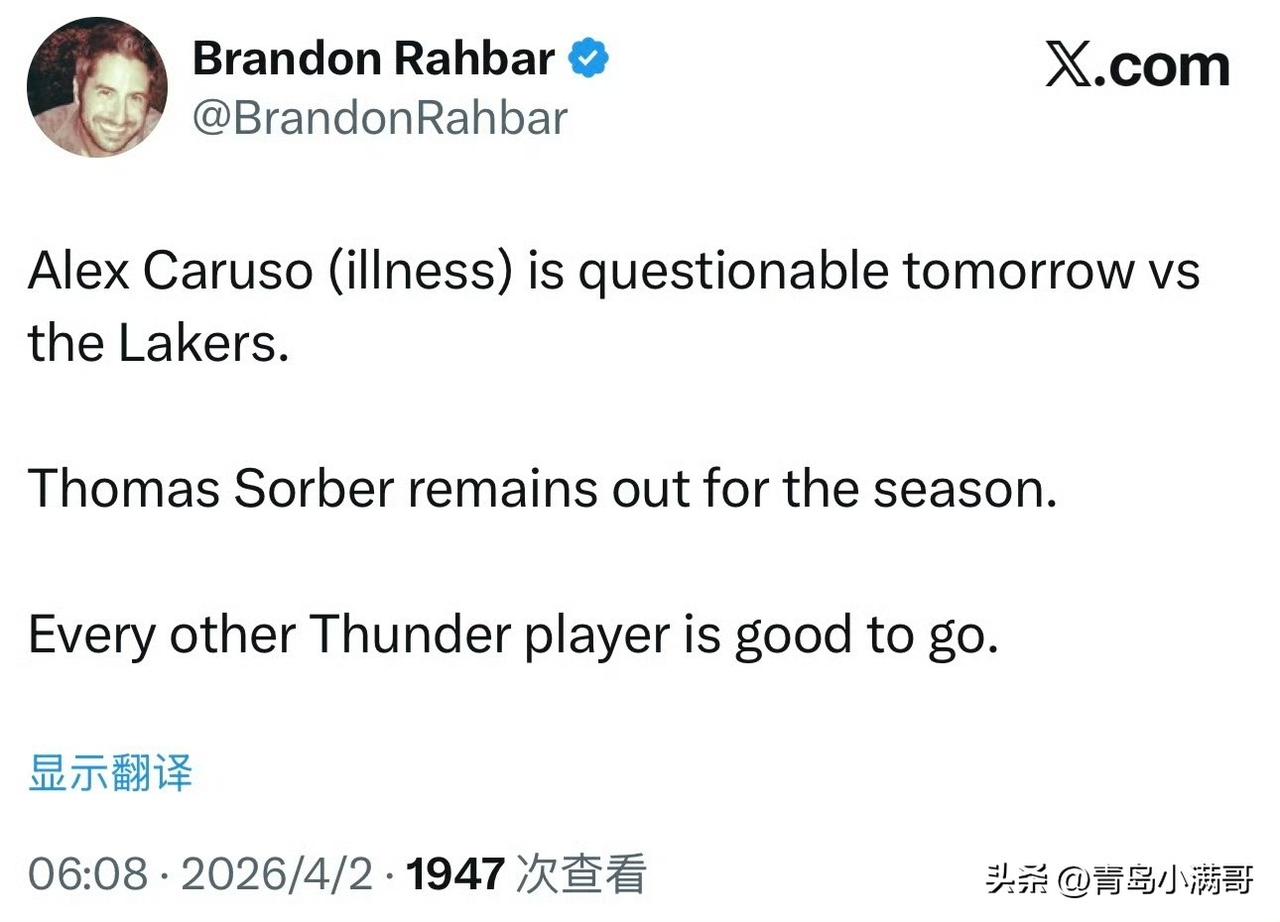 从双方的历史交锋数据来看,2025年11月13日,雷霆主场121-92大胜湖人;2026年2月10日,湖人主场110-119不敌雷霆;湖人两战全败,而接下来一周内他们要打两次雷霆,这就非常关键了,所以这场比赛必定是全力输出的一种状态。湖人 东契奇 詹姆斯