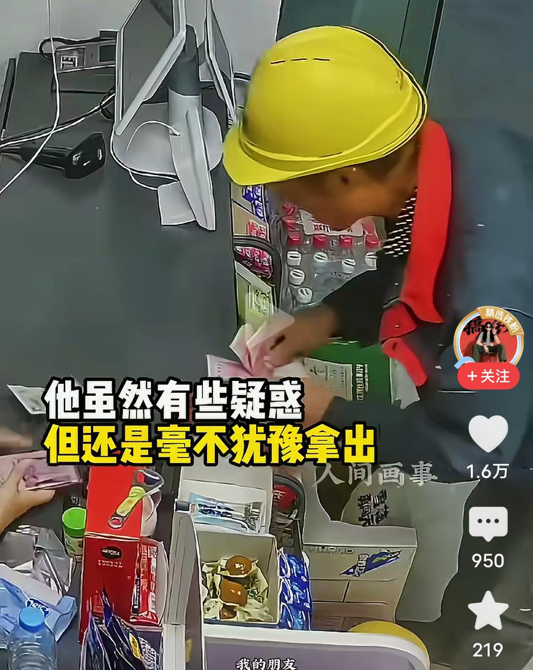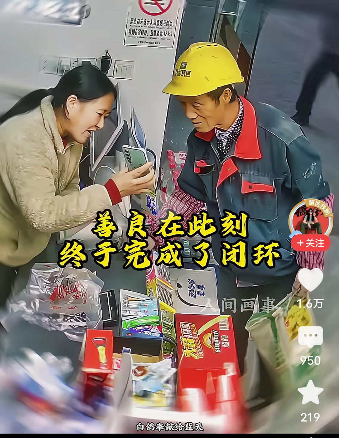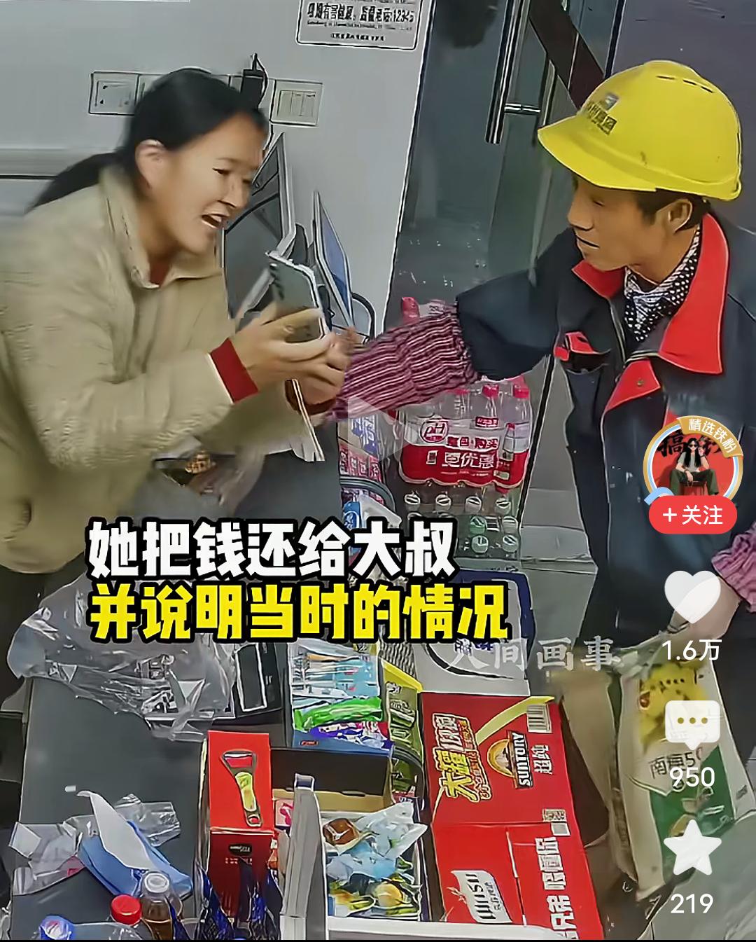 刷到一个视频,很是感动! 一位农民工大叔,去工地附近的小卖店买东西,买完东西要结账时,老板娘让他看监控,大叔一脸疑惑,以为自己做错了什么。 原来在一个月以前,大叔来店里买东西,掏出30块钱,在老板娘转头拿东西时,大叔无意间用手蹭掉了10快钱,等老板娘转过头来发现钱不对,大叔又重新补上了10块,虽然大叔心里有点疑惑,但还是毫不犹豫的又拿出钱补上,当自己太累没数清。 过后老板娘从监控里发现了那张掉落在盒子里的十元钱,她等了一个月,终于等来了大叔,然后拿出手机让农民工大叔看监控,说明了情况,并退还了那10快钱,善良在此时此刻,终于完成了闭环! 看到这里,我破防了,内心满是暖暖的感动,善良的老板,纯朴的大叔,双向的奔赴,共同造就了这场善意的碰撞,融化了这个冬天人们内心的坚冰,像一股春风扑面而来! 友善,尚义,不图意外之财,不昧锱铢之钱,彰显店主品德高尚;农民大哥不争不辩,付足货值才转身离开,足见厚道有德。 这些美好品行的光辉,闪现在最底层的人群中,真让人感动。 真诚,善良,守信,尚义才是美好人间最高贵的装饰。 世界有寒凉,但总有人带着热意走向你,即使是最小的善意,也会温暖到你和我!