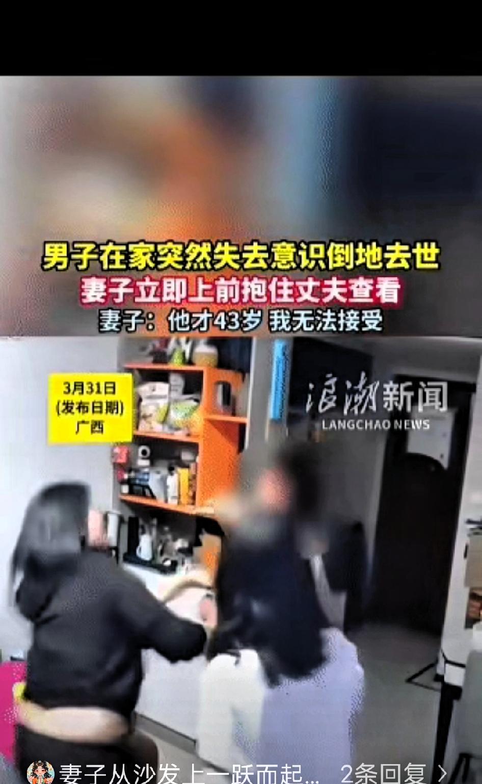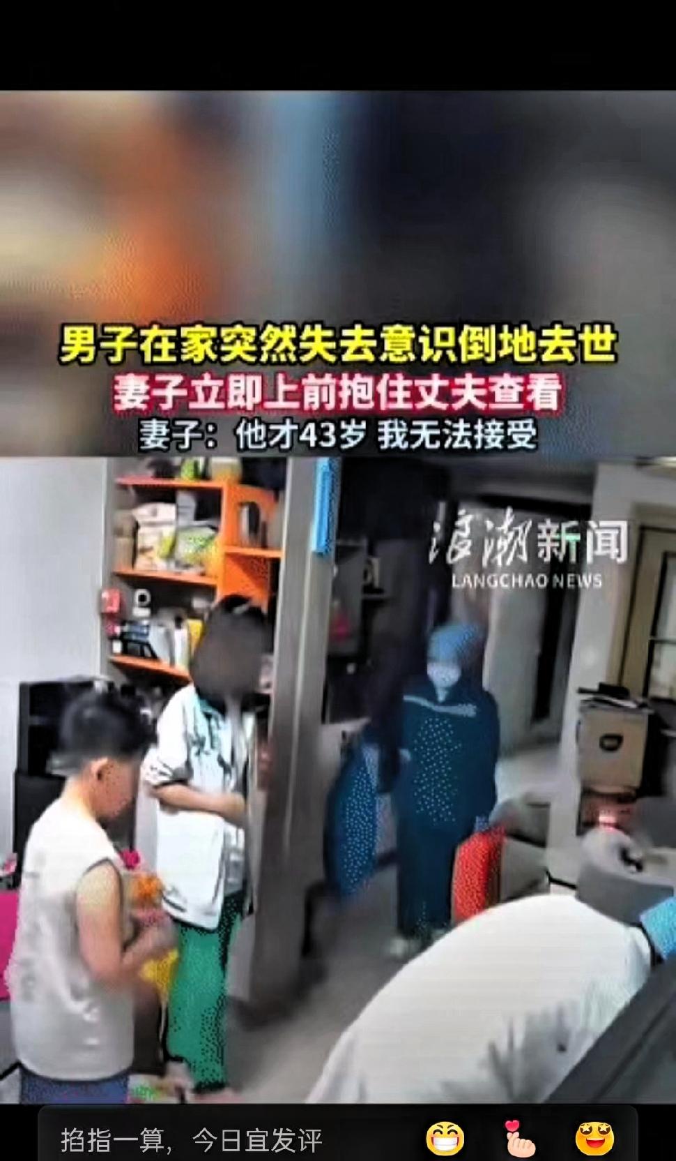 痛心!近日,广西,女子正躺在沙发上和丈夫、女儿闲聊。 前一刻还在正常交流,突然就失去意识,情况十分危急。 妻子发现后立刻上前施救,掐人中、呼喊求助,同时让女儿赶紧拨打急救电话。因男子已无法站立,家人只能将他放平在地,焦急等待医护人员赶来。 尽管家人第一时间采取了急救措施,也及时呼叫了救援,可最终还是没能挽回生命。面对突然离世的亲人,妻子难以接受,正值壮年的家人骤然离去,对整个家庭而言,无疑是沉重的打击。 这样的突发意外,也让很多人内心深受触动。中年人本就是家庭的重要支撑,上有长辈需要照料,下有子女需要陪伴,一旦出现意外,整个家庭的生活节奏都会被彻底打乱。 我们常常忙于日常琐事与工作奔波,总觉得身体的轻微不适无关紧要,习惯性透支精力,忽视身体发出的信号。总以为意外离自己很遥远,总把来日方长挂在嘴边,却忽略了生命的脆弱与无常。 健康从来都不是小事,它是维系家庭幸福的基础,也是好好生活的前提。不必过度焦虑,但也不能疏于在意,规律作息、留意身体变化,不过度劳累,既是对自己负责,也是对家人的守护。 生活不必追求轰轰烈烈,平安顺遂、家人安康,便是最踏实的幸福。珍惜当下的每一天,善待自己的身体,才是对生活最认真的态度。 你平时会关注自身的健康状态,及时调整生活习惯吗?