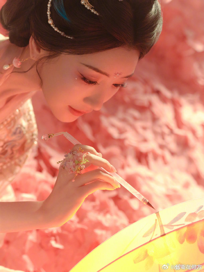 毛晓彤花神古风造型一袖云光,满肩花影,这组古风大片直接把春日仙境搬进了镜头里~粉衣金绣衬得眉眼温柔,花钿珠饰添了几分灵动,执伞提灯间,仿佛从盛唐画轴里走出来的花神,每一帧都美到失语。毛晓彤
