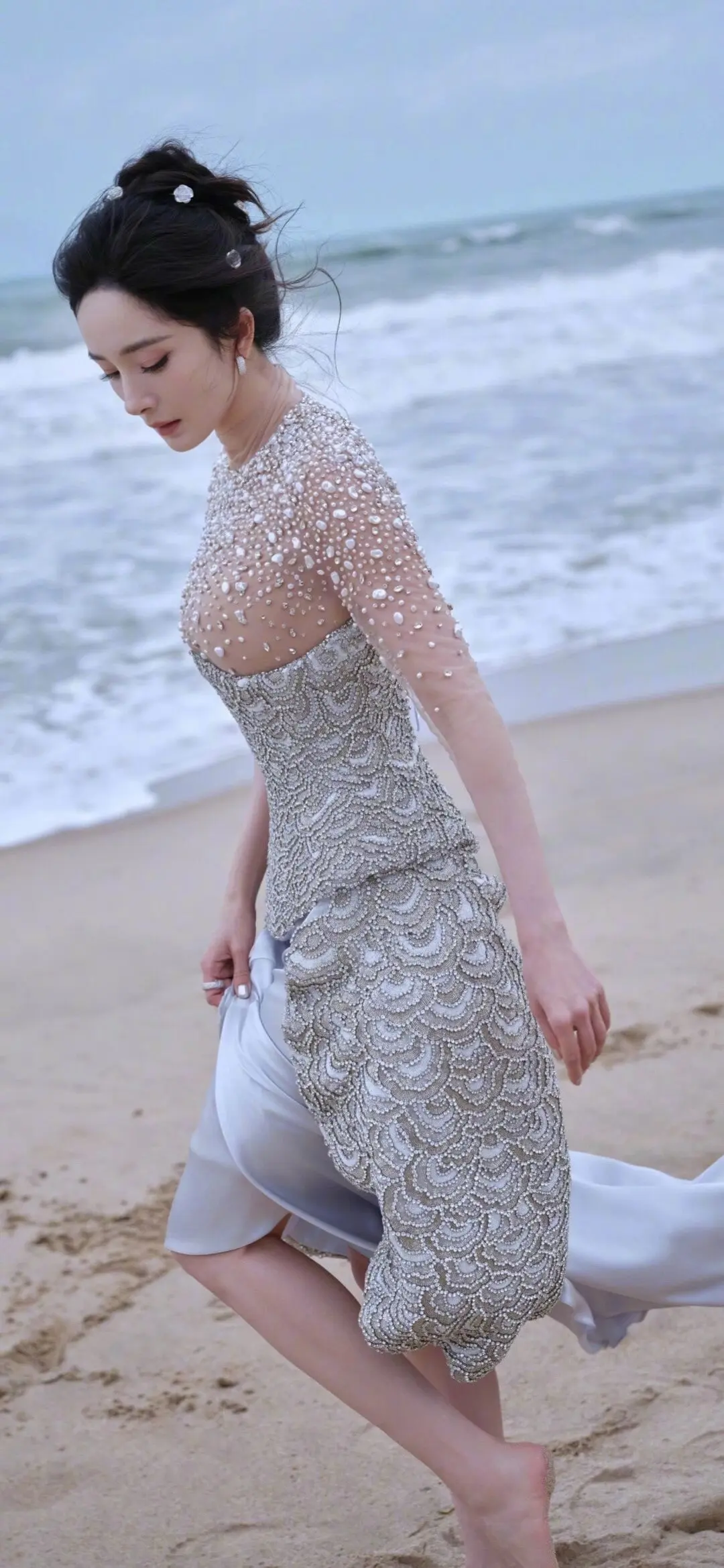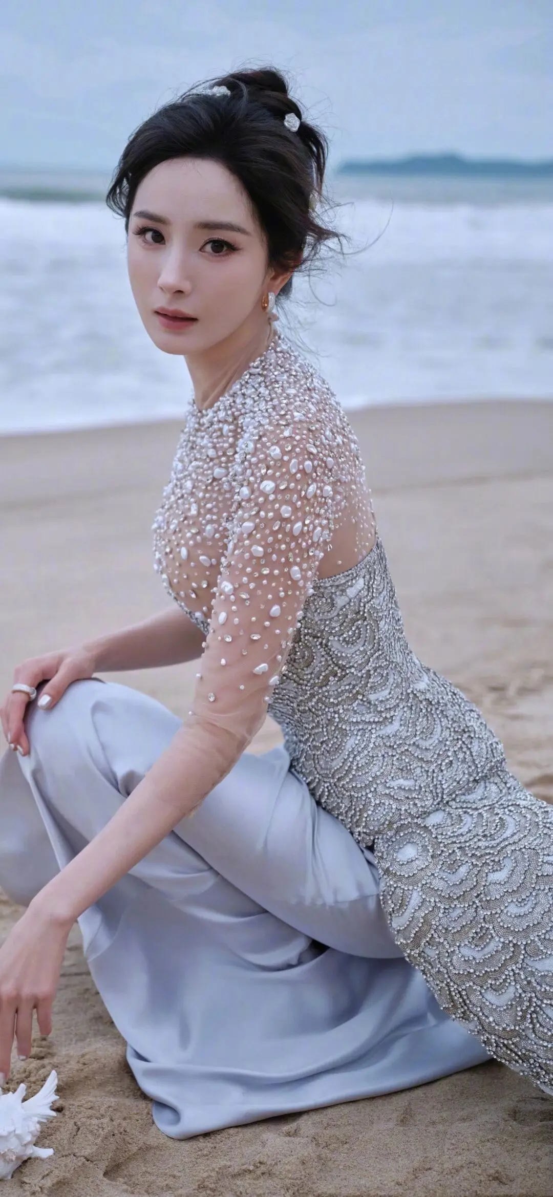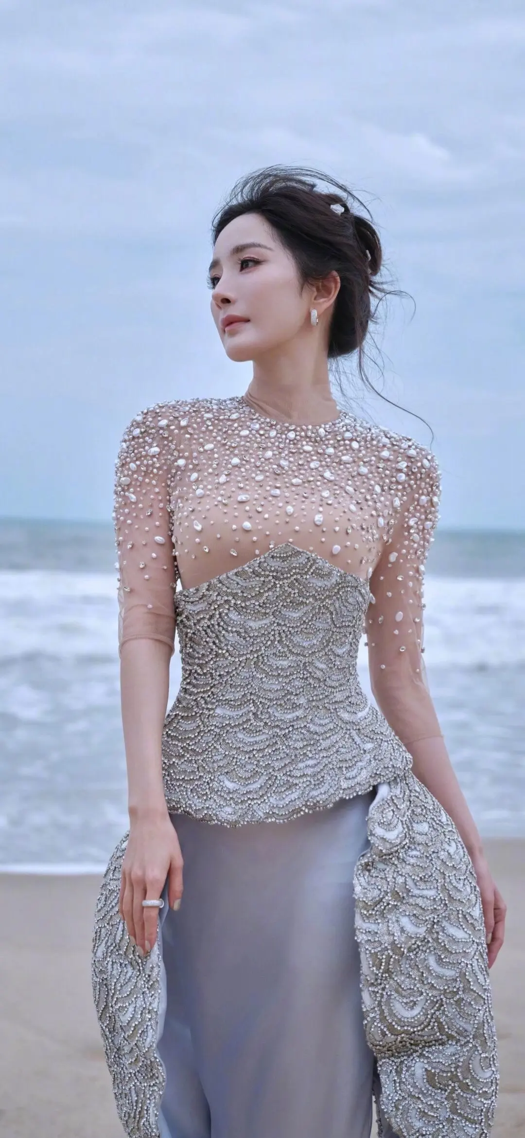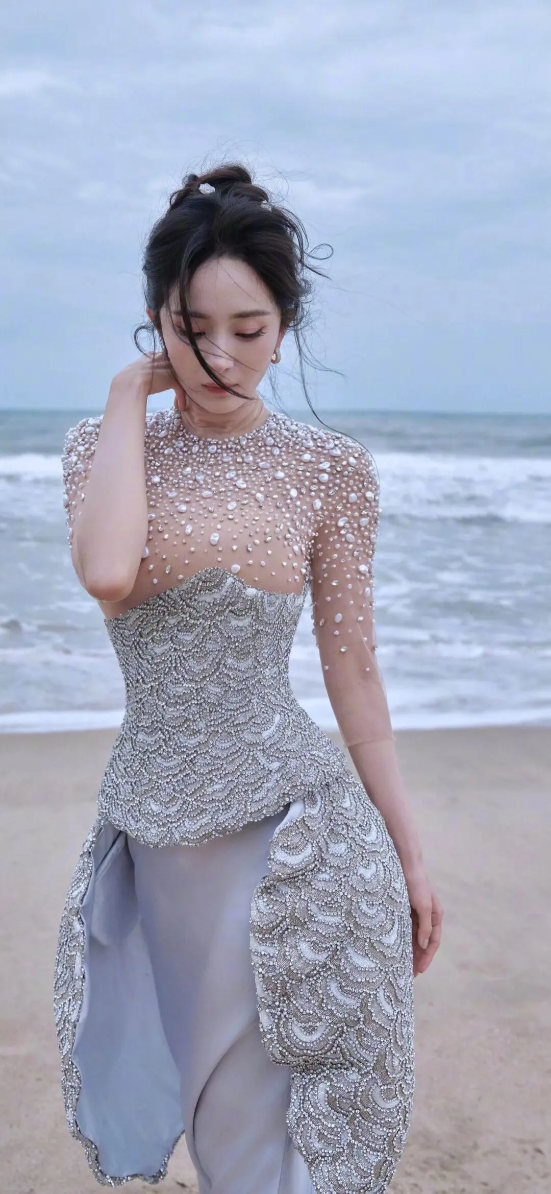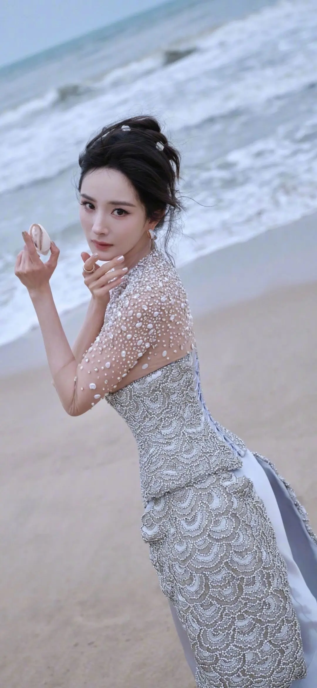 美女壁纸~杨幂,一袭粉灰撞色的高定礼裙,是揉碎了晚霞与晨雾的浪漫。慵懒卷发衬着暖