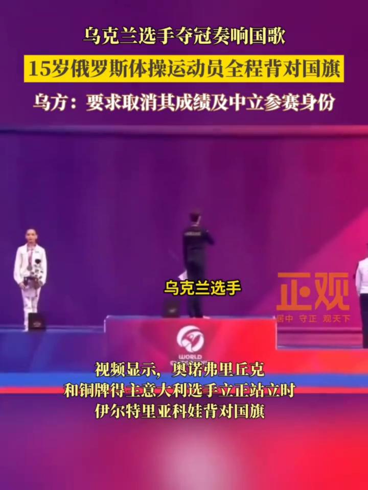 乌克兰选手夺冠奏响国歌,15岁俄罗斯体操运动员全程背对国旗。乌方:要求取消其成绩