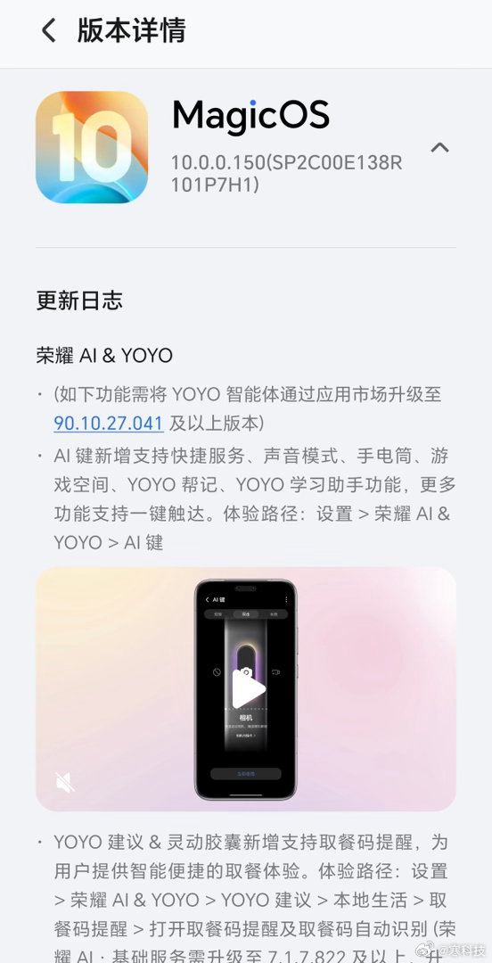新版本来了!MagicOS 10.0.0.150 已从昨日(4月1日)起陆续推送,想抢先体验的小伙伴,可以立即进入设置-系统和更新-软件更新,点击右上角“三个点”,选择“升级尝鲜”来获取更新。