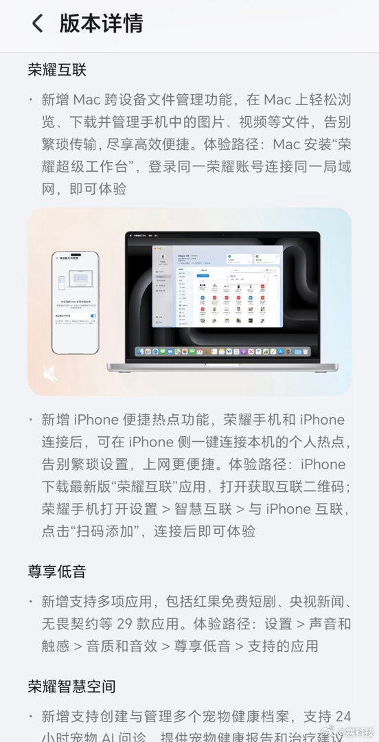 第二批机型的推送将于今晚启动,预计在4月中旬覆盖所有计划内设备。本次覆盖的机型包括Magic7系列、GT Pro、MagicV5、500系列、WIN系列等手机,以及荣耀平板MagicPad3 Pro 13.3、MagicPad3系列等多款平板。