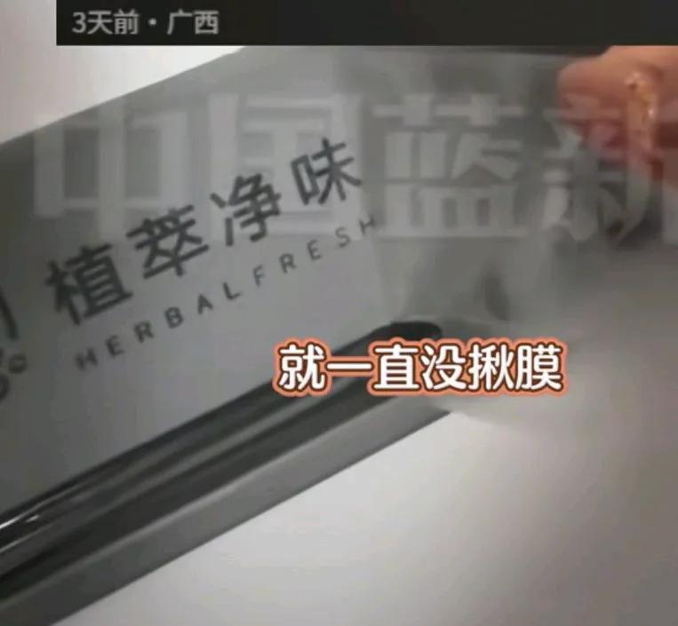 看你家的冰箱有没有撕膜?女子说她家的冰箱是搬家的时候买的,三年了,总感觉有味道, 一看是通风口处的保护膜没有撕, 看到这里,众多网友纷纷检查自家冰箱是否中招, 冰箱说,新鲜空气给一点吧!网友说,严重怀疑我家是不是也没撕膜, 还有的问这个膜到底在哪里?我想检查都无从下手呀, 一般买了冰箱, 大家都不知道还有这个操作呢! 中国人的观念就是新东西保护膜一定不要撕, 有的还要去再贴上一层保护膜
