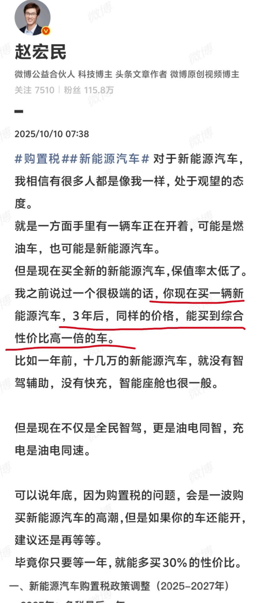 中国汽车流通协会发布2月及3月三年车龄纯电动车型保值率排行榜TOP15,基本在47%到62%之间。正好对应了我一直预估的,每隔三年,同样的价格,能买到综合性价比强一倍的新能源汽车。#新能源汽车#