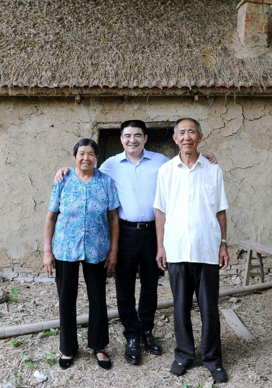 陈光标站在草屋前留影,有钱如他,草屋只是用来拍照的,豪宅才是用来住的。