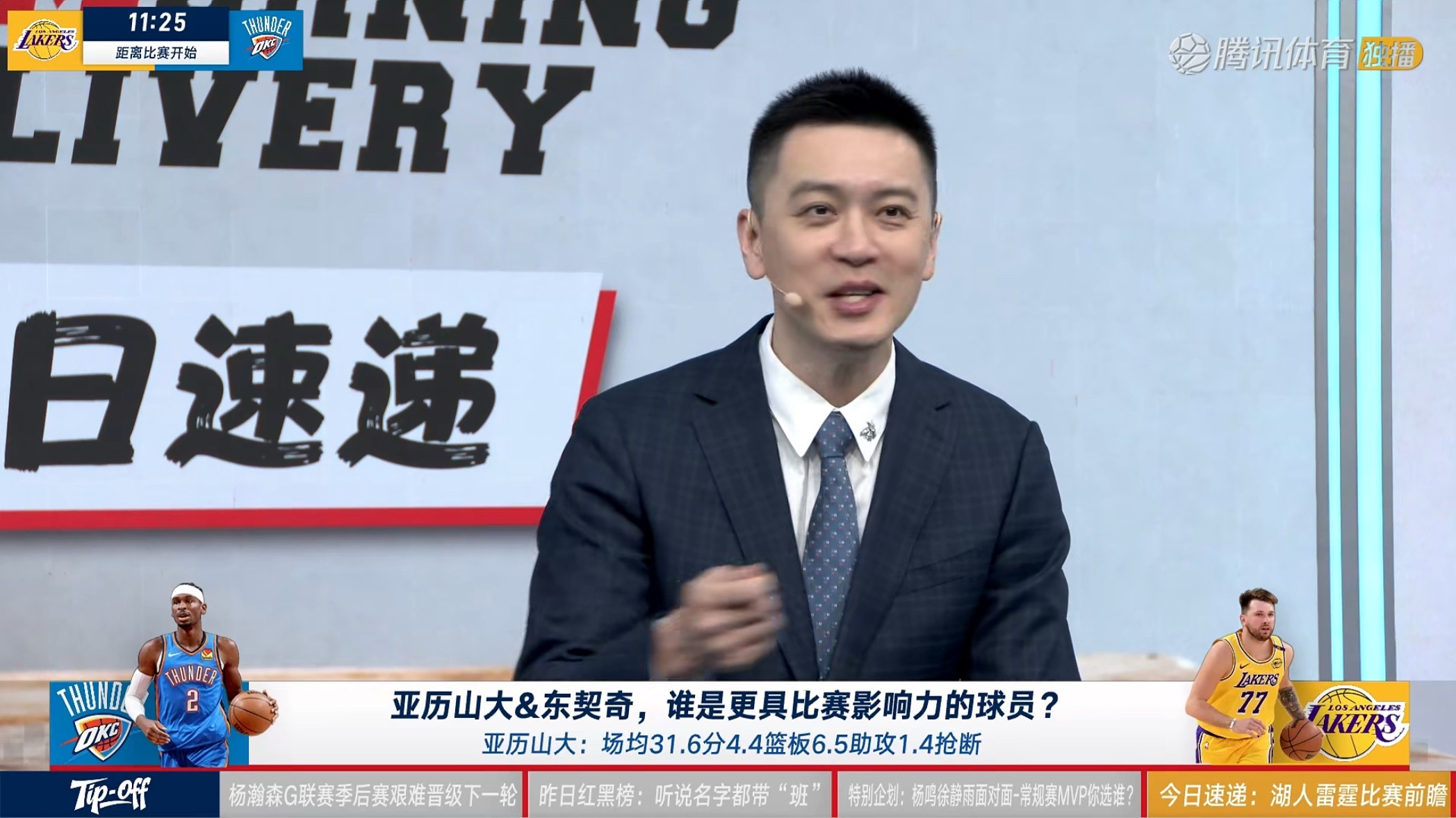 杨导今日做客腾讯体育解说西部焦点战湖人客场对雷霆湖人vs雷霆