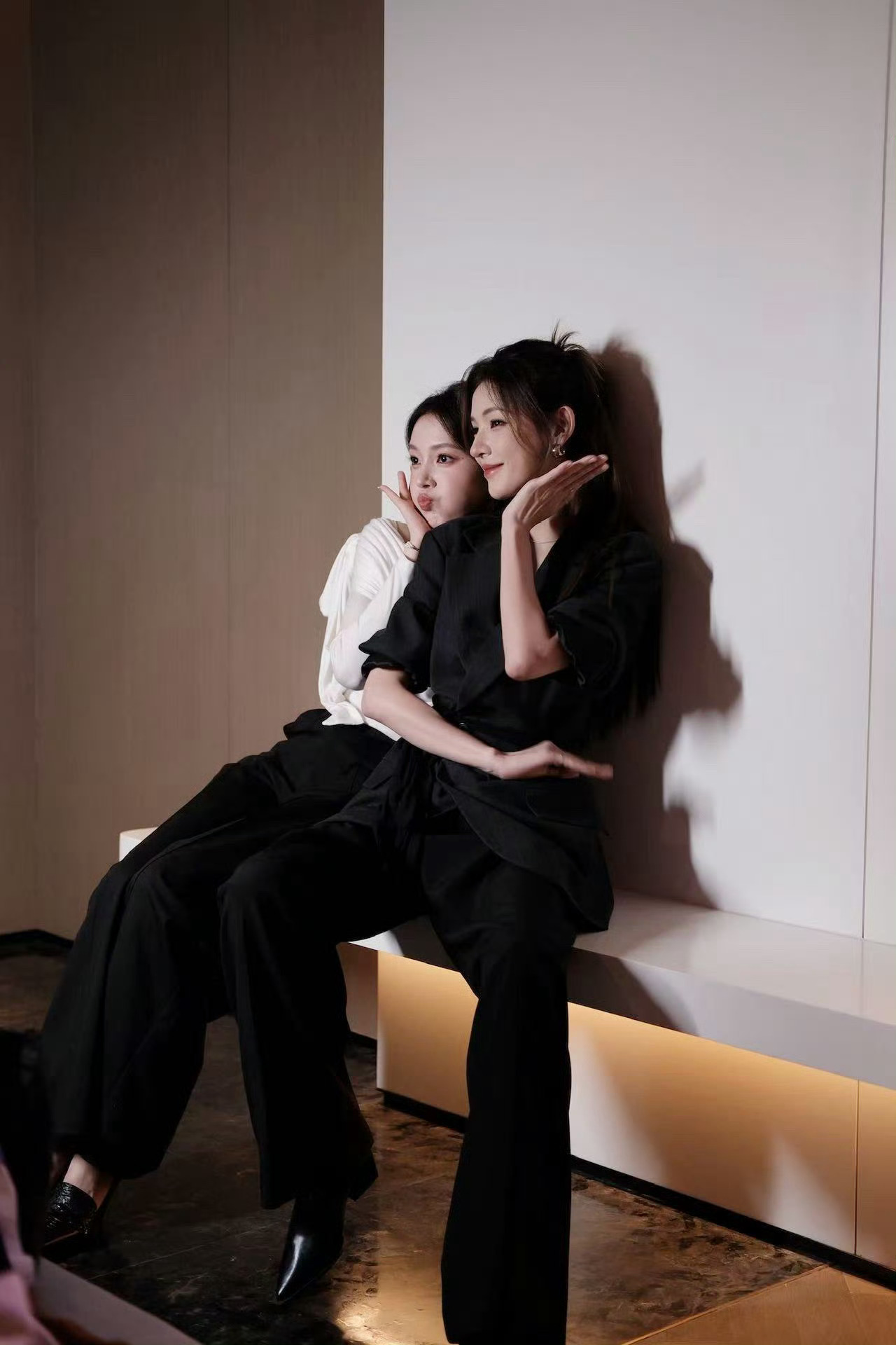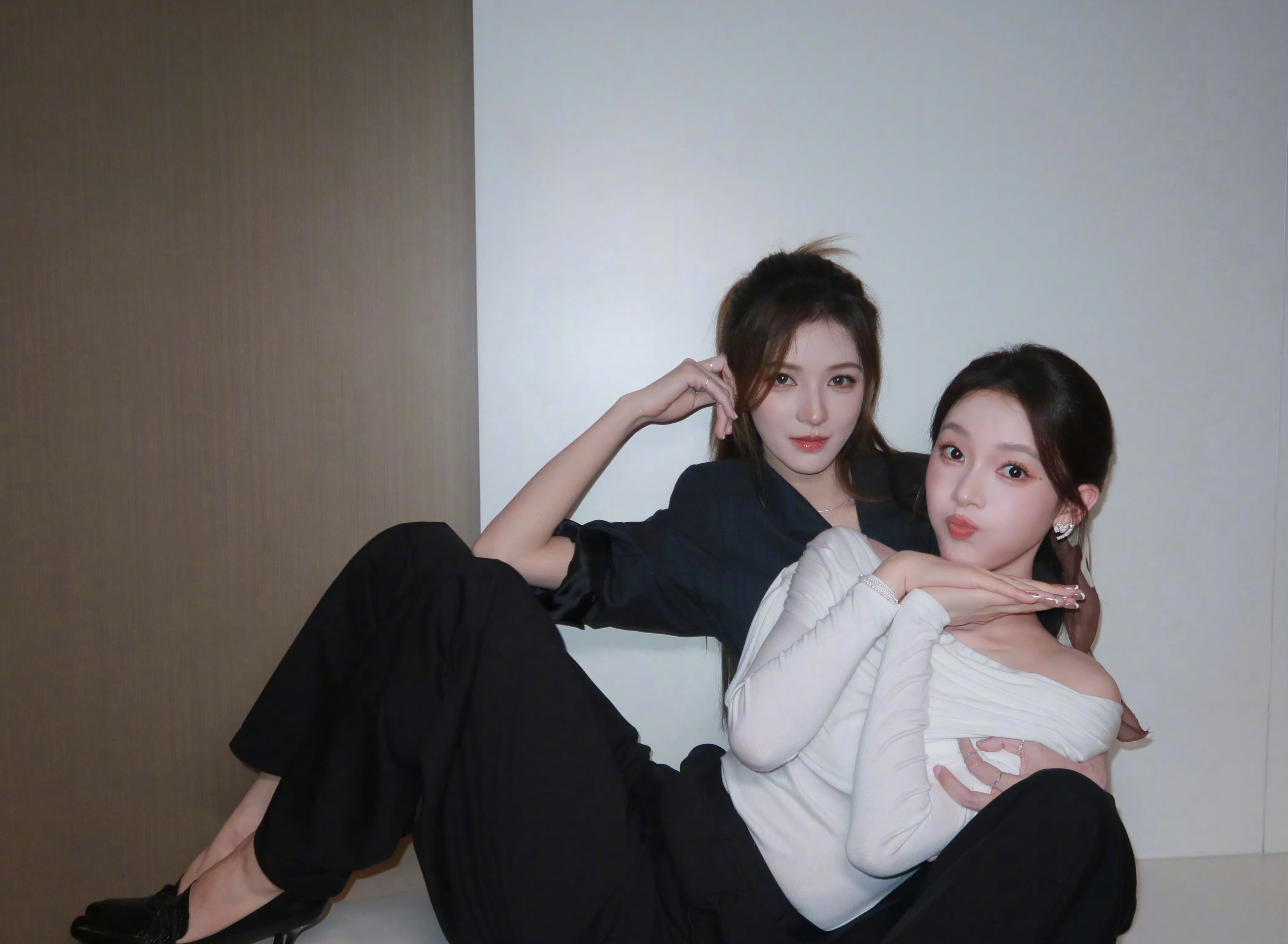 张予曦单手抱陈瑶 还是默契的黑白穿搭,张予曦这个单手抱太有女友力了