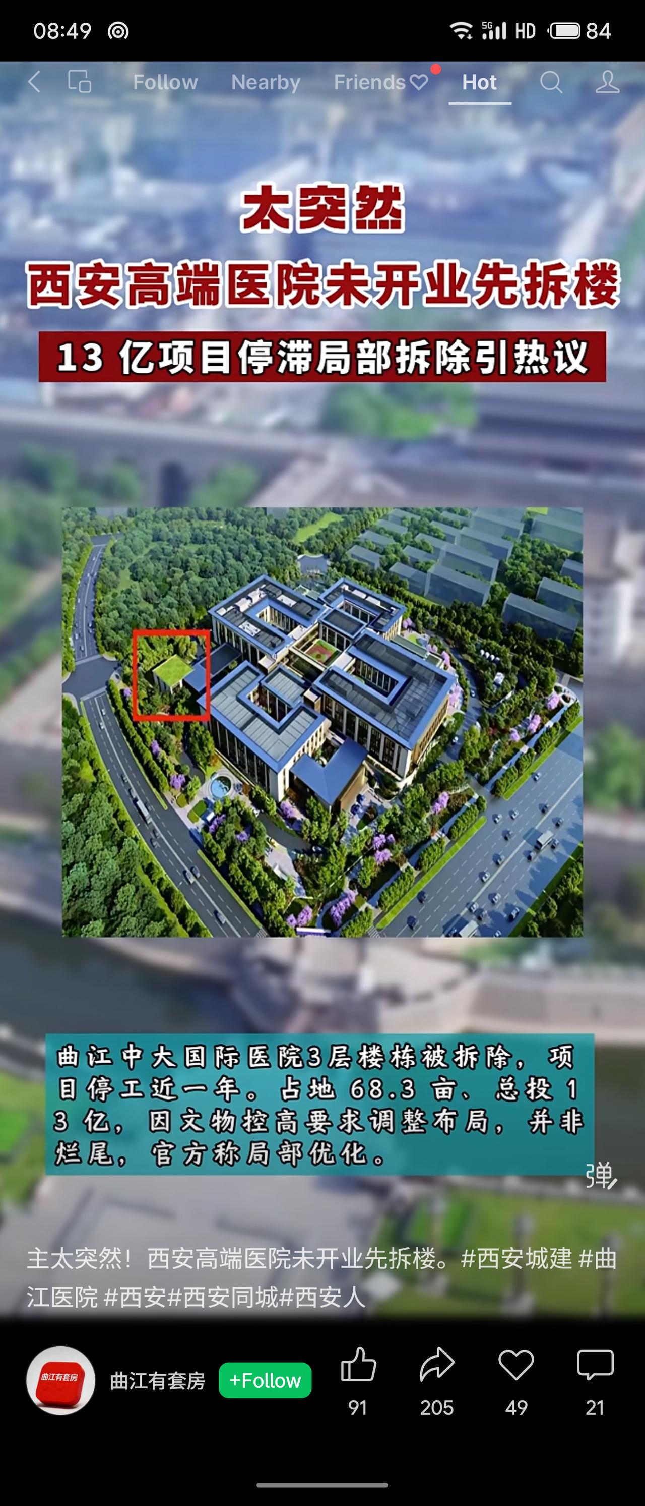 西安曲江中大国际医院因文物控高要求调整布局,未开业便拆除部分楼栋,项目停工近一年
