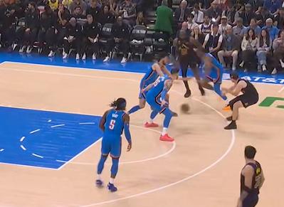 湖人开局被雷霆打停的原因唯一,里夫斯! 北京时间4月3日,湖人与雷霆的比赛刚开始,球队瞬间2-9落后,雷迪克直接叫暂停,而原因唯一,里夫斯。 图一:杰威一对一单挑,里夫斯没有防住中距离,更糟糕之处: 图二:湖人阵地战,里夫斯传球给詹姆斯被抢断,多特追身三分;随后他又传球给东契奇时被多特抢断完成反击重扣。 一次防不住、两次失误,里夫斯完全没有适应雷霆的攻防强度,雷迪克被迫叫暂停,督促他的攻守。