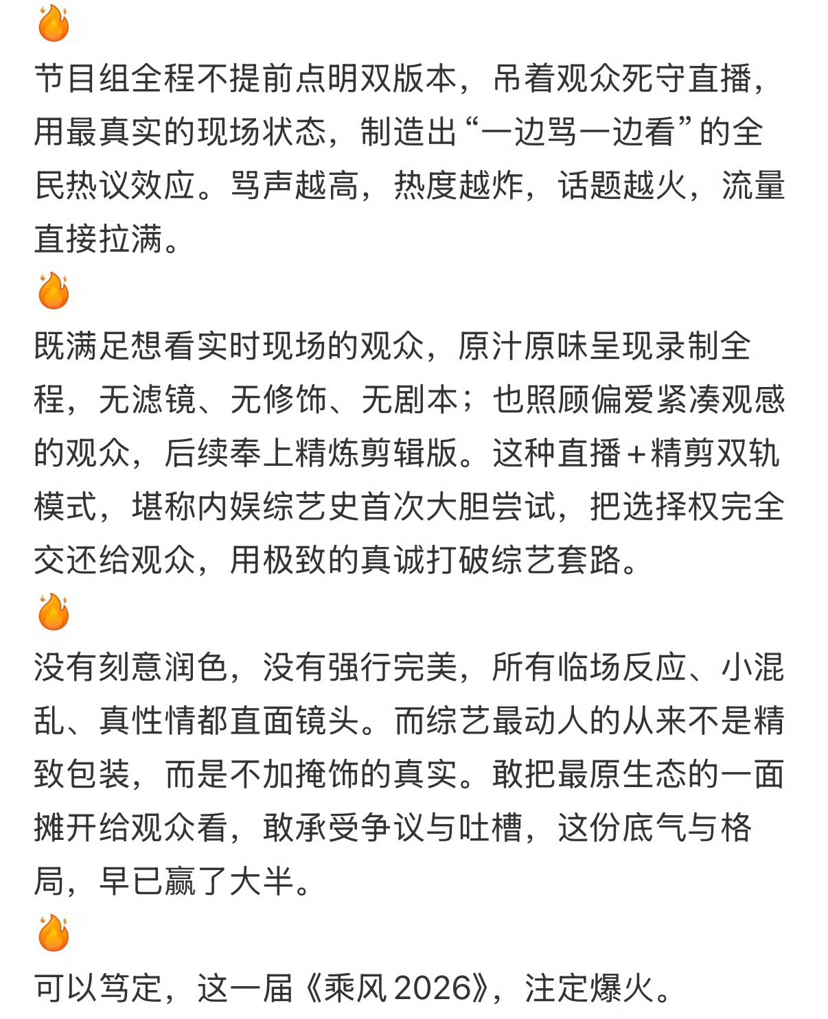 芒果的格局再一次凸显昨晚乘风初见面直播看似节奏慢、状况多,姐姐们手忙脚乱又真实可爱,原来不是翻车,是特意把最原生态的一面摊开给大家看,不强行完美,不刻意剪辑,先给观众看最鲜活的现场,再出精致剪辑版,敢直面吐槽、敢呈现真实,这份格局和底气真的太圈粉! 乘风2026