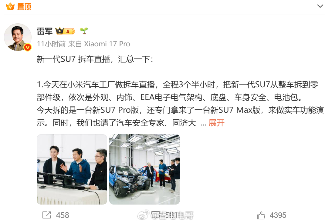 直播之后雷总发了四千字的直播总结,这也太细致了只是简单的浏览一眼,就可以看出来小米的用料和设计确实很用心,而且不仅有视频拆车还有直播拆车,都是值得鼓励的