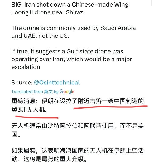 真的假的!中国翼龙-2无人机被伊朗击落?4月2日,外媒报道称,伊朗在设拉子附近击落了一架中国制造的翼龙-2无人机。外媒称,该无人机通常被沙特阿拉伯和阿联酋使用,而不是美国。如果属实,这表明一架海湾国家无人机在伊朗上空活动,这将是一次重大升级。 当然,伊朗方面是不是真的击落了我们国产无人机,这还不得而知。但,相关信息显示,沙特,阿联酋确实采购过我们这种类型的无人机。该无人机是察打一体无人机,是我们在国际市场主力出口型号。该无人机机长为11m,翼展20.5m,最大起飞重量为4.2吨,最大速度370km/h,升限为9000m,可外挂6个挂点,最大为480kg。 如今这事有了新进展,伊朗官方已经实锤了!伊朗国家媒体PressTV明确报道,防空部队在设拉子击落的两架无人机中,有一架经专家确认就是中国翼龙-2,操作方大概率是沙特或阿联酋。这可不是不知名媒体的小道消息,而是伊朗官方发布的信息,还配上了无人机残骸的画面,可信度直接拉满。 要说清楚这事儿,得先明白翼龙-2为啥会出现在伊朗上空。咱们先看看沙特和阿联酋对这款无人机的“喜爱程度”——根据公开资料,阿联酋早在2017年就买了约100架翼龙-2,还引进了总装线,现在累计保有量超150架。沙特更夸张,2025年直接签了85亿美元的大单,包含3条生产线,翼龙-2在沙特的实战飞行时间都超5000小时了。这俩国家都是翼龙系列的核心客户,无人机出现在他们手里完全合理。 关键问题来了,海湾国家的无人机为啥会飞到伊朗境内?这就得说说最近中东的局势有多乱。2月28日美以联手对伊朗发动“史诗怒火”军事打击后,伊朗的报复就没停过,导弹和无人机轮番轰炸海湾国家的美军基地。但伊朗的打击精度有点一言难尽,迪拜帆船酒店、阿布扎比机场这些民用设施都遭了殃,阿联酋光拦截的无人机就有1826架,导弹372枚,经济损失惨不忍睹。 之前海湾国家还只是被动拦截,现在看来是真被逼急了。3月25日,沙特、阿联酋等六国发表联合声明谴责伊朗,沙特更是直接摧毁了4架伊朗无人机,从“拦截”到“摧毁”,态度明显变硬。这次翼龙-2出现在伊朗上空,大概率就是海湾国家从被动防御转向主动侦察,甚至可能是准备反击的信号,难怪伊朗说这是“阿拉伯国家直接参战的硬信号”。 再说说击落翼龙-2的“功臣”——伊朗的“霍尔达德”防空系统和“第九日”短程导弹。这是这套系统首次取得确认战果,也能看出伊朗的防空实力确实不弱。自冲突爆发以来,伊朗已经累计击落了154架无人机,其中还包括美制MQ-9“死神”这种知名型号。不过翼龙-2被击落也不算意外,之前在利比亚、也门战场,它累计被击落过11架,主要原因是操作人员战术不当,比如低空飞行进入了防空导弹射程,不是无人机本身性能不行。 咱们客观说说翼龙-2的实力,作为中国军工出口的拳头产品,它在国际市场上竞争力极强。和美国MQ-9比,虽然载弹量不如对方的1.7吨,但续航时间和成本优势明显;面对土耳其TB2,性能更是全面领先。现在全球30多个国家都在用翼龙系列,总出口量快1000架了,这次实战虽然被击落,但其实是检验产品的好机会,后续改进后竞争力只会更强。 中国外交部已经表态了,反对袭击平民和民用设施,呼吁尽快停火谈判。毕竟咱们是军工出口国,不希望看到自己的产品被用于加剧地区冲突。但话说回来,国际军售有明确的规则,翼龙-2的出口都是符合国际法的,买家怎么用,主动权不在咱们手里。 这事儿最让人担心的是中东局势会不会彻底失控。阿联酋现在已经在考虑武力重开霍尔木兹海峡,沙特也驱逐了伊朗外交官,海湾国家和伊朗的矛盾越来越深。更关键的是,霍尔木兹海峡被封锁后,全球20%的石油运输受影响,油价波动已经让孟加拉国关闭大学、菲律宾进入能源紧急状态,咱们国内的油价和快递运费说不定也会受波及。 现在距离特朗普设定的4月6日停火最后期限越来越近,美伊能不能谈拢还是个未知数。但可以肯定的是,这场冲突已经让中东的地缘格局彻底变了,海湾国家不再想在美伊之间找平衡,乌克兰也趁机插一脚,派出反无人机专家和中东国家签防务协议。 说到底,翼龙-2被击落只是这场中东乱局的一个缩影。一款中国无人机,牵扯出美伊冲突、海湾国家立场转变、全球能源安全等一系列问题。后续咱们得重点关注4月6日这个节点,看看美伊会不会达成停火,海湾国家会不会真的全面参战。你觉得这场冲突会怎么收场?欢迎在评论区聊聊你的看法。