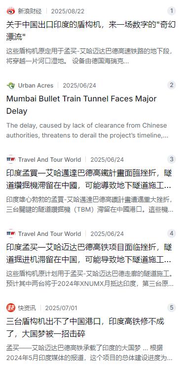 中方终于做出让步了! 最近几天,印度媒体那边可谓是一片欢呼雀跃,全都在报道一件事——两台大型盾构机,终于从中国广州港出发,顺利运抵了印度孟买港。不少印度媒体直接用“中方终于让步”来形容这件事,语气里的兴奋劲儿,隔着屏幕都能感受到。 麻烦看官老爷们右上角点击一下“关注”,既方便您进行讨论和分享,又能给您带来不一样的参与感,感谢您的支持! 事情要从印度的“大国梦”说起。孟买至艾哈迈达巴德高铁项目,是印度第一条真正意义上的高速铁路,全长508公里,设计时速可达320公里,连接着金融中心孟买和总理莫迪的老家古吉拉特邦,被视为印度基建的“皇冠明珠”。这个项目当初是中日在竞争,2015年日本以年利率0.1%的超低息贷款和技术转让承诺截胡成功,印度也顺势把“去中国化”定为战略核心之一。整条高铁计划采用日本新干线技术,通车目标一度定在2023年,承载了印度举国上下对现代化的殷切期待。 然而理想很丰满,现实很骨感。高铁建设从开工起就磕磕绊绊,征地、环保、邦际协调等问题层出不穷。在孟买城区段,项目遇到了最棘手的难题——需要挖掘约21公里的地下隧道,其中还包括一段7公里的海底段,最深要挖到水下100多米。这种工程对设备要求极高,必须使用超大直径盾构机。印度自身没有生产这种设备的能力,全球能稳定制造这种“地下航母”的国家屈指可数。最终印度选择了德国海瑞克公司作为设备供应商,订单包含三台直径达13.56米的巨型盾构机。可他们忽略了一个关键事实:这几台盾构机的制造和总装,全部在海瑞克的广州工厂完成。印度花大价钱想避开中国供应链,却依然绕不开中国制造。 2024年10月,这批盾构机在中国广州港造好了,随时可以发货。但印度国家高铁公司没有按合同结清尾款,直接导致三台盾构机滞留港口超过一年。海瑞克公司方面态度明确:尾款不付清,机器不发。这是国际贸易的基本规则,谁都一样。可印度方面非但没有反思自己的问题,反而把矛头指向了中国,在国际场合抱怨中方“卡脖子”。2024年11月德国总理访印期间,印度商业部长当着记者的面抱怨中国企业不发货,结果德国经济部长当场就拆了台——人家说得清清楚楚,不是中国不放,是你们印度拖着尾款不给。 更让人哭笑不得的是,印度一边怪中国“扣货”,一边又想浑水摸鱼。他们提出先发货后付款,觉得盾构机在港口放着每天都要产生仓储费,中方肯定急着出货。这种先拿货后付款的套路在国际贸易中根本不成立,尤其面对的是上亿欧元级别的重型装备,没有供应商愿意承担这种风险。盾构机就这么在广州码头吹了几个月海风,印度的高铁隧道工程也因为缺少关键设备,只能停工等着,工地上的工人和设备全闲着,每天都要产生巨额固定成本。据估算,这半年多的延误给项目造成的直接经济损失超过千万美元,间接损失更是不计其数。 到了2024年11月15日,事情又添了新的变数。中方四部门联合发布了《两用物项出口管制清单》,盾构机因为使用了稀土永磁材料电机,被纳入管制范围。这意味着,就算印度付清了尾款,还得提交最终用户证明和技术用途报告,说清楚这批设备的具体用途和技术参数,经过中方审批后才能放行。印度的“拖延战术”彻底玩砸了。绕开中国供应链的路走不通,寻找其他替代供应商也基本不可能。全球直径10米以上超大直径盾构机的年产能中,中国占比超过七成,欧盟和日本加起来也不到两成。就算日本企业愿意接单,交货周期也至少要两年以上,项目根本等不起。莫迪政府把这个高铁项目视为自己的政治遗产,真烂尾了,不仅赔钱还丢面子,政府公信力都会受影响。 眼看着隧道工程停工一天就多烧一天的钱,印度国家高铁公司终于扛不住了。2026年3月23日之前,印度方面悄悄结清了全部尾款,补上了所有缺失的申报材料,逐项满足出口管制要求。此后,装载着两台盾构机的货轮才从广州港启航,漂洋过海抵达孟买。根据合同和出口管理规定,这批设备使用的稀土永磁电机需要详细说明最终用户信息和技术用途,而印度提交的材料在格式和内容上存在不足,经过多次补充和修改后才最终通过审核。整个交付过程严格遵循贸易规则和出口管理要求,没有任何“让步”可言。 为了让盾构机顺利入境,印度还悄悄调整了对华基建限制政策。2026年3月,印度正式放宽了对陆地接壤国家投资审批的部分限制,为这批设备开辟了特殊快速审批通道。根据新政策,持股比例不超过10%的相关项目可以走自动审批程序,印度相关部门就按这一规则快速完成了盾构机的入境手续。但需要指出的是,这只是一次局部、策略性的政策调整,印度对大额控股投资的限制并没有实质性放开。说白了,印度在硬撑了那么久之后,最终还是得低头解决问题。两台盾构机2026年3月23日抵达孟买贾瓦哈拉尔·尼赫鲁港,每台重约3000吨,组装和测试预计需要约90天,掘进作业计划在2026年7月左右展开。
