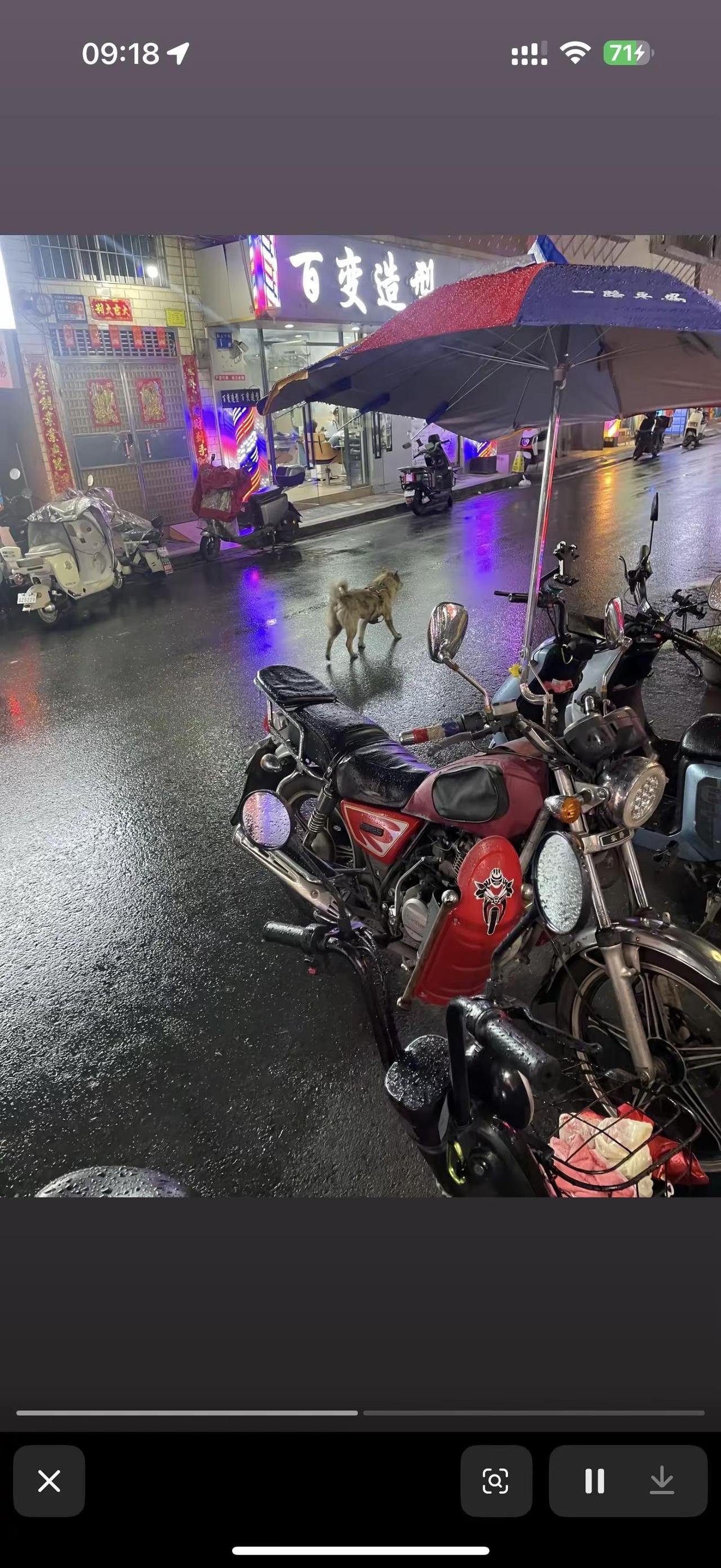 请问有没有在附近想养狗并且能养到最后,尽心尽力照顾狗狗的朋友。狗狗是在过年前一两天出现的,一直有穿着一条背带,所以以为只是放养到处浪,后面过完年发现狗狗一直在流浪,而且时不时还被人驱赶,下大雨的时候也没有地方去,图片是前段时间其他网友看到拍的。我前天晚上回家也遇到过它,跟着一只有主人牵着的小狗,没有伤害的意思只想跟着回家。之前有两个小姐姐说想养,然后找人问到我,说着说着又没有了下文。希望附近有热心又想养狗的朋友,如果有意愿,可以联系我,狗狗目前还在流浪,但是流浪活动的范围只有这附近,找到不算难。雨夜流浪狗 午夜街头的流浪狗 暴雨中的狗
