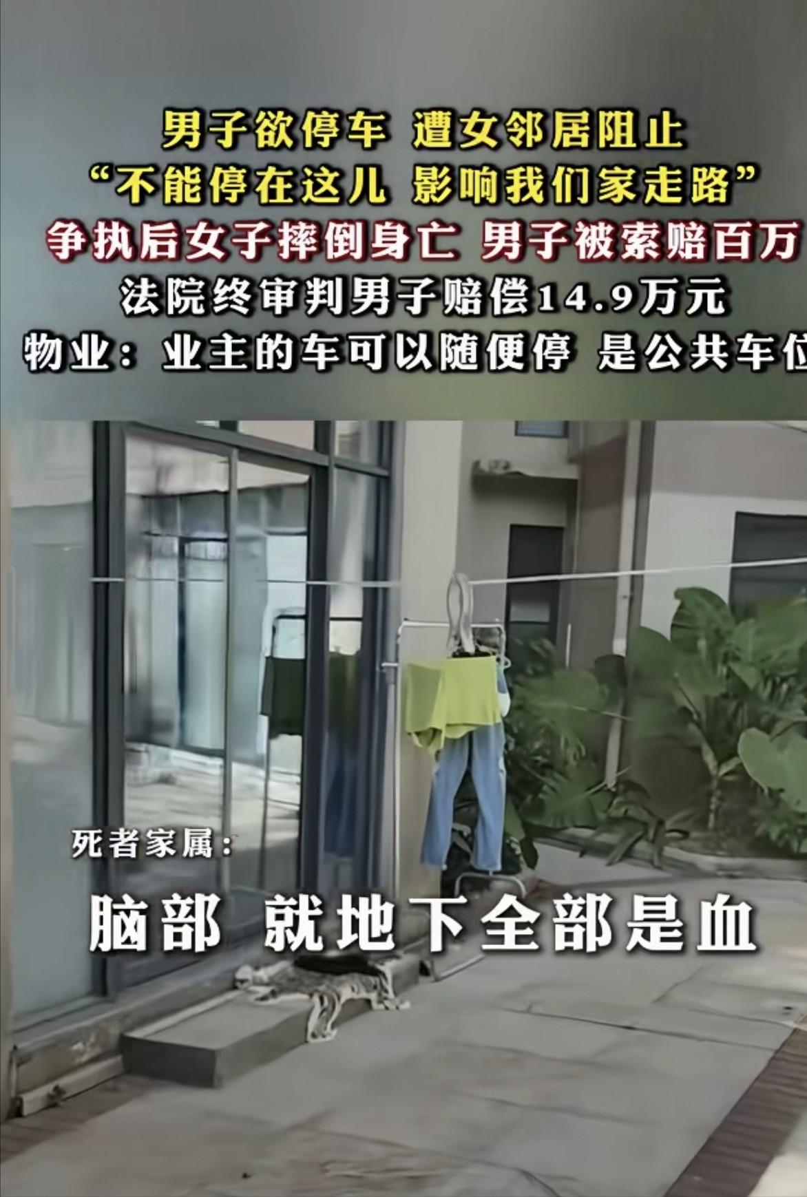 “讹天讹地讹空气!”海南,一男子在小区公共区域停车,女邻居蹦出来反对:不能停在这儿,影响我家走路。男子和女邻居吵了几句,女邻居却突然摔倒死亡,家属狮子大开口,跟男子索赔122万,法院判决男子骂了女邻居,导致她情绪激动摔倒,赔偿14.9万,男子直呼冤枉,不服提起上诉:物业都说这是公共车位,可以随便停车,我没骂他凭啥赔钱?二审法院判决让人唏嘘。 2024年2月5日傍晚,海南万宁的李先生把车停进小区空地时,绝不会想到这个再普通不过的动作,会让他搭进去14.9万。 车刚熄火,邻居常女士就从单元门冲出来,劈头盖脸一句话:"不能停这儿,挡着我家走路了。" 李先生当场就愣住了 —— 物业明明说过这是公共车位,业主都能停,怎么就挡她的路了?他想解释几句,常女士却完全听不进去,嗓门反倒越吵越大。 两人就这么吵起来了。监控拍得清清楚楚,全程没有任何肢体接触,就是嘴上你来我往。 可吵着吵着,常女士突然从自家玻璃门里摔了出来,脑袋狠狠磕在地上。李先生当场吓懵,立刻拨打 120,却还是没能救回她的命。 尸检报告揭开了真相:常女士本身患有严重冠心病,争吵时情绪激动,诱发了脑挫伤和蛛网膜下腔出血。换句话说,那颗本就脆弱的心脏,在争吵中被引爆了。 常女士的家属随后起诉了李先生一家四口,索赔 122 万元。他们的逻辑很简单:是你把人气死的,你得负全责。 一审法院调了监控,看了尸检,最后判李先生赔14.9万,承担15%的责任。判决依据是:双方沟通未果,均未选择退让换地方停车,而是持续争吵,该行为与常女士情绪激动后摔倒死亡存在关联。 李先生彻底懵了。我就正常说话,没骂人、没威胁、没诽谤,物业都证明车位合规,凭什么要我为邻居的心脏病买单? 他不服,上诉了。可二审法院审完,还是维持原判。更让他想不通的是,一审说他"吵架",二审直接升级成"语言暴力"。 什么叫语言暴力?判决书里没给标准,监控里也没录下具体对话内容。李先生到现在都想不明白,自己那几句话到底暴力在哪儿。 法院用的是"相当因果关系"理论——你的行为不一定是直接凶手,但只要参与了因果链条,就得担责。福建翔安之前有个类似案子,土地纠纷吵架后一方猝死,法院也判了10%责任。 这套逻辑听起来有道理,可问题在于:我怎么知道对方有心脏病?日常争执里,法律是不是要求每个人都得有"医学预判能力"? 小区邻居对这事看法也分化得厉害。有人觉得李先生太冤,合法用个车位还得赔钱。也有人觉得他多少有点责任,毕竟人是在跟他吵架时出的事。 李先生现在已经向海南省高级人民法院申请再审了。他不是为了那14.9万,他就是想要个说法:一个合法使用公共设施的人,为什么要为别人不可预见的基础病承担责任? 这个案子留下的最大疑问,不是判决金额,而是一条看不见的红线:在邻里冲突中,"语言暴力"的边界到底在哪儿?"相当因果关系"能延伸到多远? 那块引发悲剧的空地还在,但它已经成了整个小区的隐喻——公共空间不只是物理意义上的共享区域,更是情绪、权利与风险的共担场域。 当法律无法给出清晰答案时,每个人都可能成为下一个李先生。 信源:女子因停车与邻居争吵,摔倒后死亡!家属索赔122万元,法院判赔14.9万元2026-03-27 15:55·新民晚报