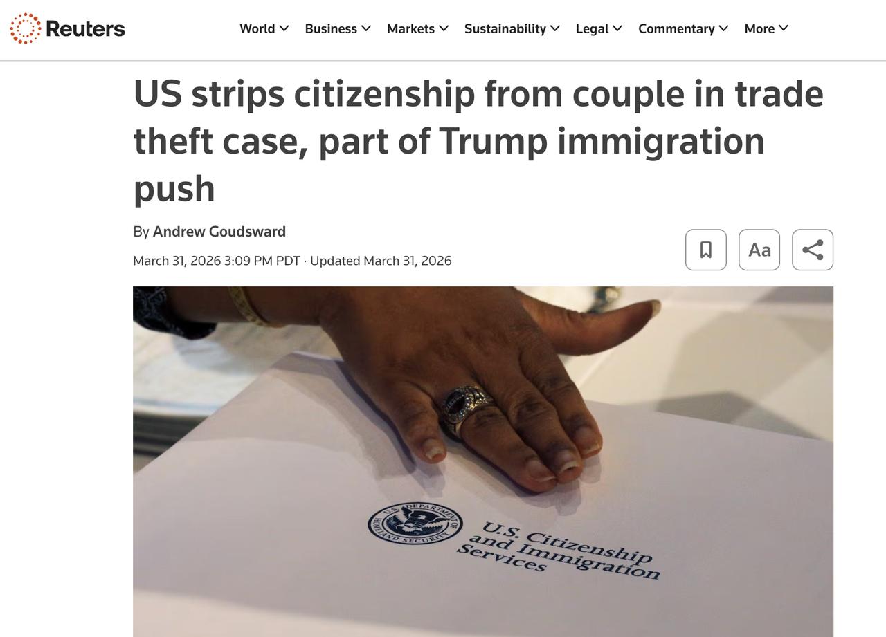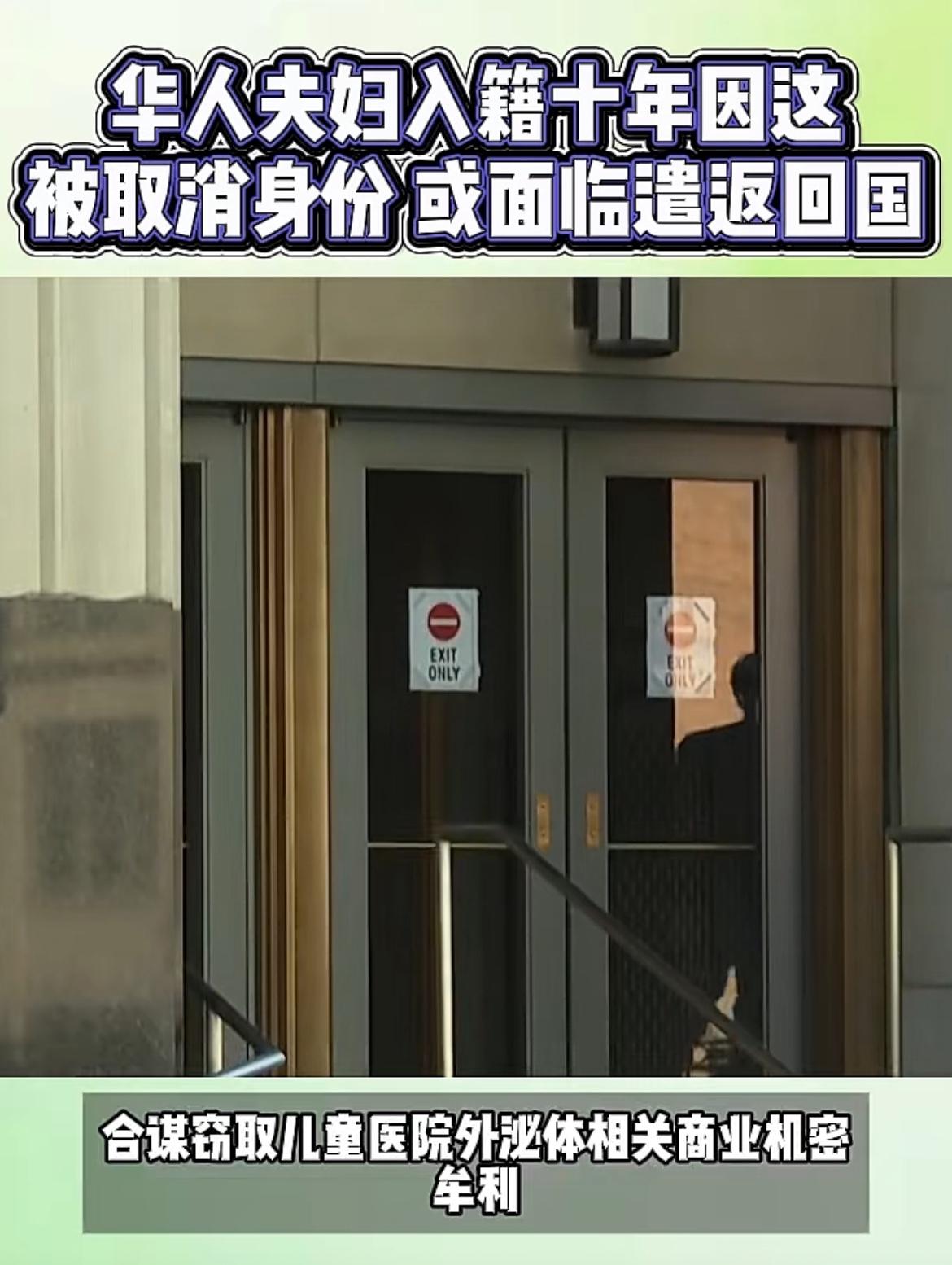 美国一对华人科学家被无情剥夺公民身份,只为 150 万美元利益,现在面临无国可归。 3 月 30 日的美国南加州法庭宣判,陈丽、周宇夫妇因其不道德行为被剥夺美国公民身份,将被遣返。 这两人都来自中国大陆,都是美国需要的精英人才。陈丽 2007 年持工作签证进入美国俄亥俄儿童医院从事科学研究,随后其老公以访问学者身份一同进入该医院工作。因为陈丽在研究方面的杰出表现,2011 年夫妻双双获得绿卡,也就是永居身份。2017 年陈莉正式获得美国公民身份,其老公周宇以配偶身份一同获得。 在外人看来,这对来自中国大陆的夫妇,通过自己的个人奋斗,赢得了美国政府的高度认可,为他们在科研方面的杰出贡献给予了美国身份的奖励,是新一代华人美国梦实现的代表之一,享受美国自由的空气。 可谁能想到,2019 年美国 FBI 突袭两人的办公室,指控他们窃取科研秘密而被捕。经过 FBI 的两年多的调查取证,证实这对夫妇窃取了俄亥俄儿童医院的一种外泌体分离技术,可以用于诊断早产、肝病、癌症早筛等。 他们拿到这项研究成果后,在国内秘密成立公司,和第三方合作开发检测试剂,他们从中收取了 150 万美元的好处费。这种吃里扒外的行为,在任何公司,任何国家肯定都是无法容忍的。首先诚信有问题,其次违反当地法律法规,触犯了高压红线。 2021 年他们被法庭以窃取商业秘密罪入狱,陈丽被判处 30 个月,周宇被判处 33 个月,并处罚金 260 万美元。 他们已经在监狱服刑结束,恢复了自由身。但是以前的科研工作肯定是中断了,后续没有相关资料证明他们在从事什么工作。 2026 年 3 月 30 日,美国加州法院的又一则宣判,无疑对他们来说是晴天霹雳,因为他们的美国身份弄丢了。按照美国移民局的相关程序,他们会被启动遣返。他们之前已经入籍美国,那么显然已经放弃了之前的中国国籍。被剥夺美国国籍,显然被遣返回中国不可能。那么美国移民局将会把他们丢到可以接收的第三国,这真的是鸡飞蛋打。 想当初为了美国梦,不顾一切去服务于美国的科学研究,一心去享受自由的空气,却没想到为了蝇头小利,弄得里外不是人,大好前途尽毁。