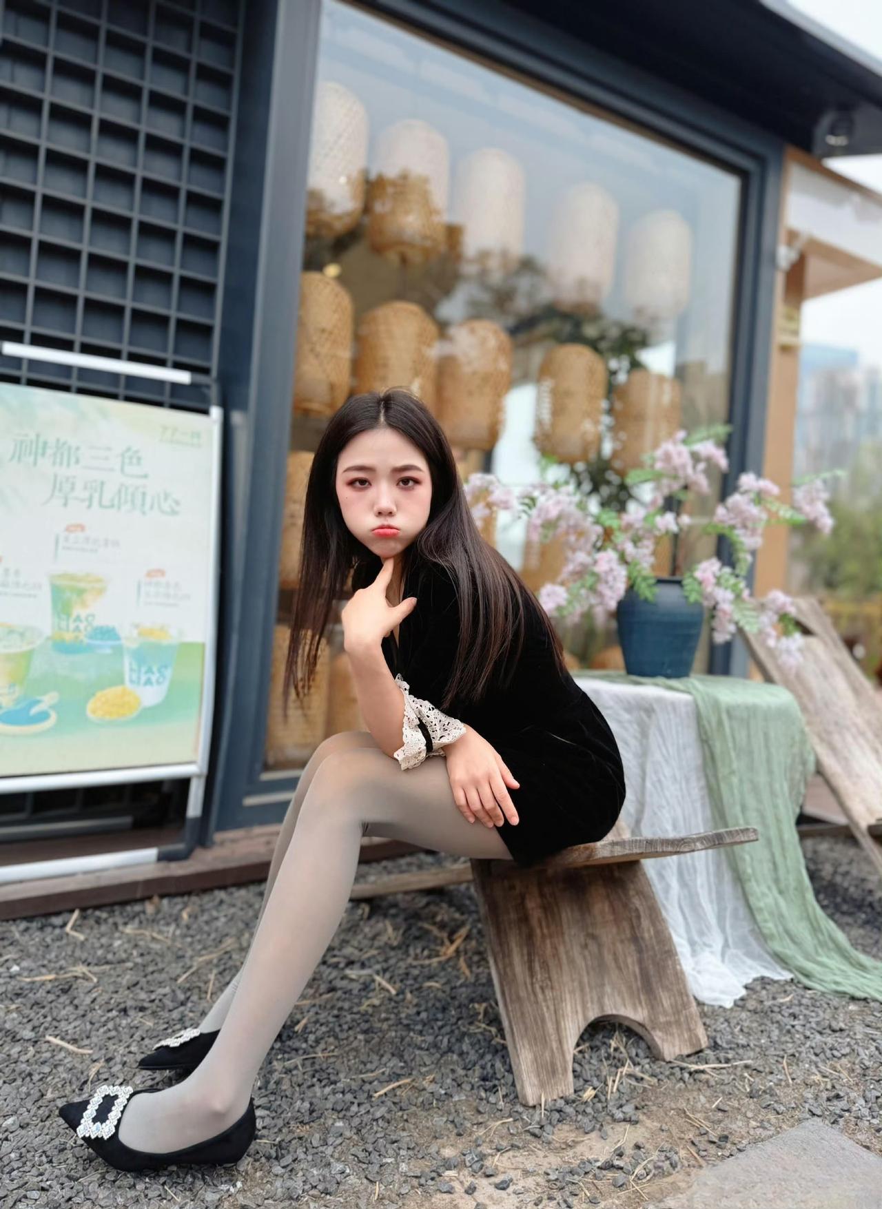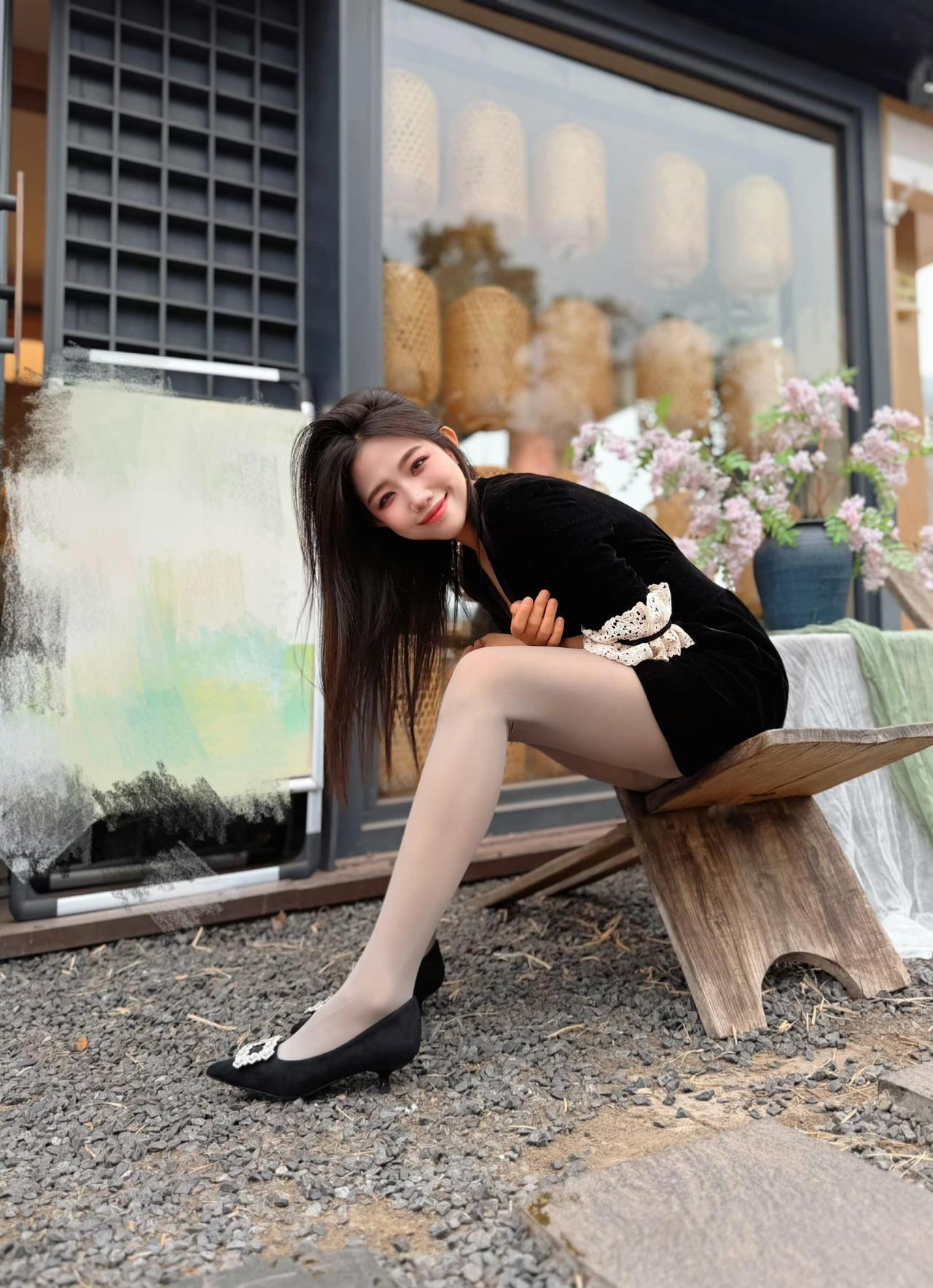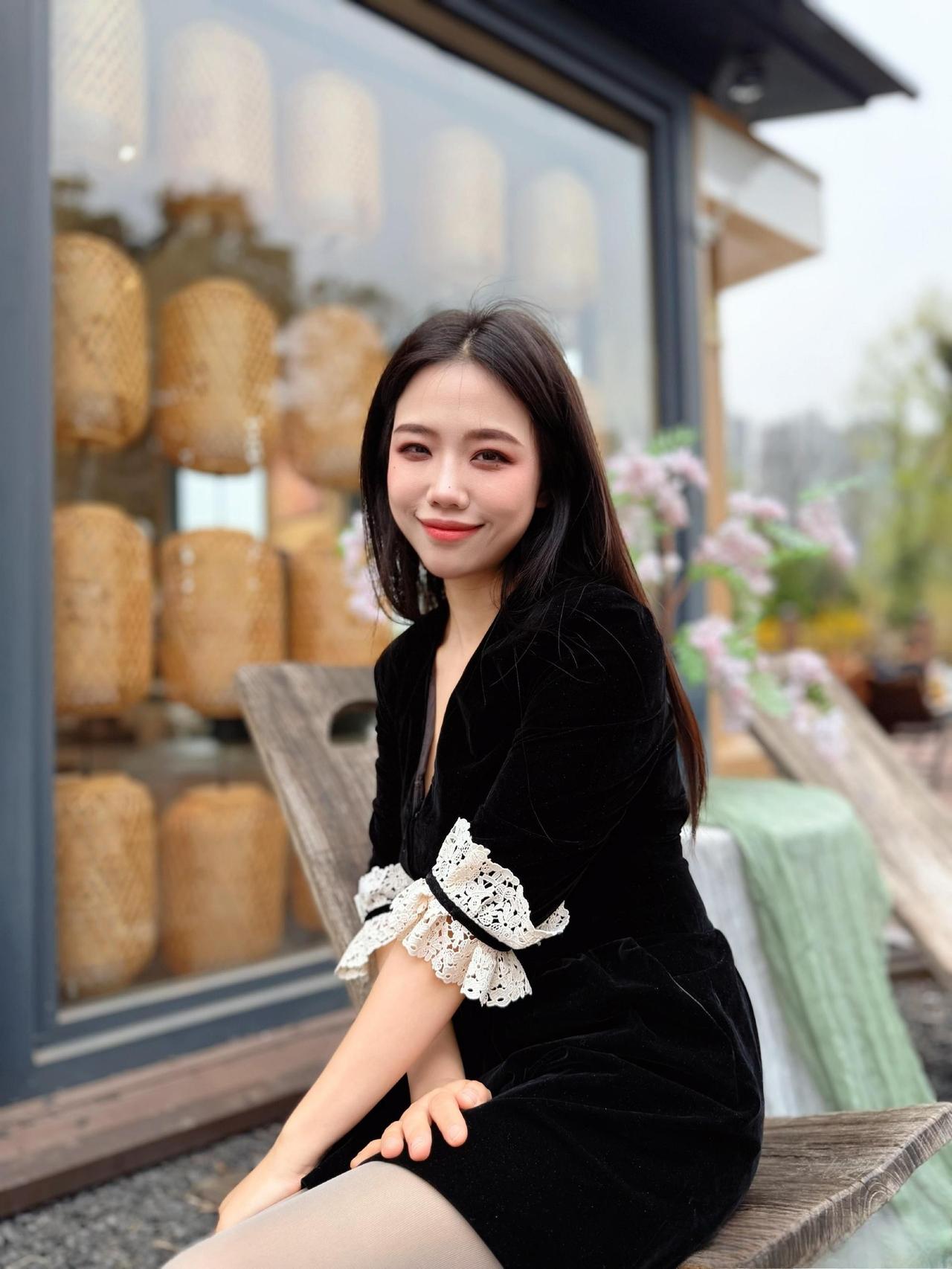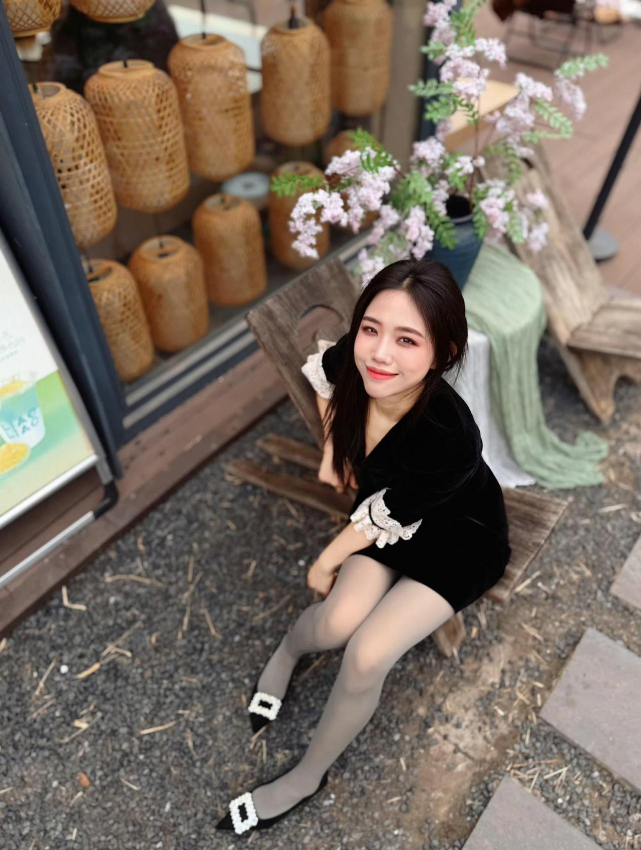 这套穿搭在太有“复古甜酷感”了!黑色丝绒裙自带贵气氛围,蕾丝袖口添了甜美元素,黑