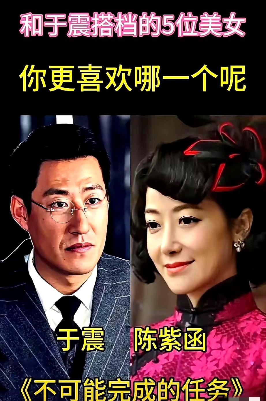 于震这“硬汉专业户”,搭档的女演员个个是美人胚子! 《五号特工组》里的王丽坤,英气十足,演起特工来那叫一个飒。还有陈紫函,跟于震合作了三次谍战剧,简直是“金牌搭档”,演国民党女特务特别有味道。 颜丙燕在《走出硝烟的女人》里,把抗战女性的坚韧演活了,气质没得说。 最特别的还是他媳妇辛月,俩人直接在《不可能完成的任务》里演夫妻档,这默契度别人真比不了。 这几位女演员,你觉得谁的颜值最能打?