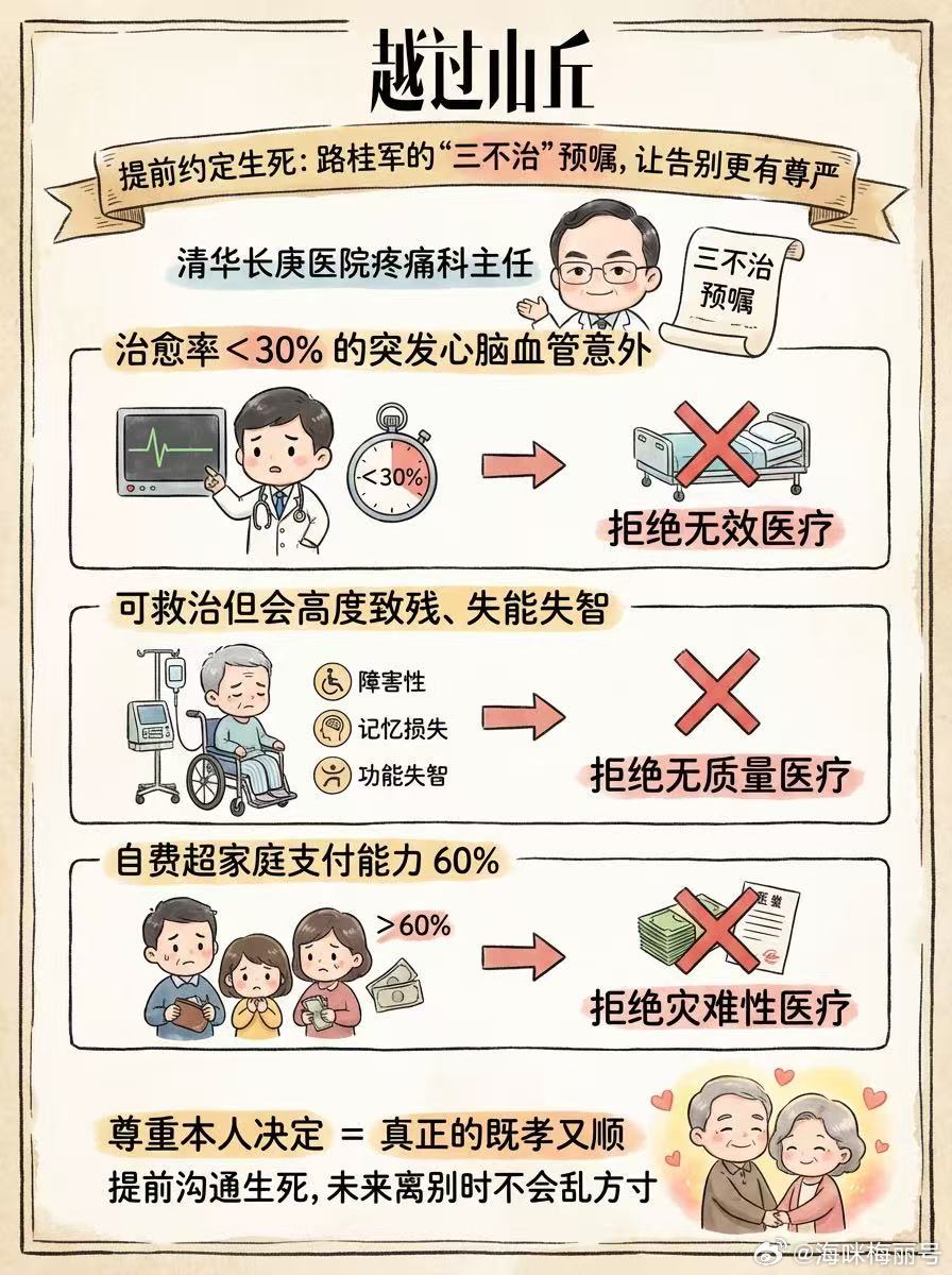 三甲医院医生建议重病有三不治 医生立预嘱称治愈率低于30%可放弃 越过山丘 “三不治”是一种勇气,一种清醒,一种对生命最深刻的理解。