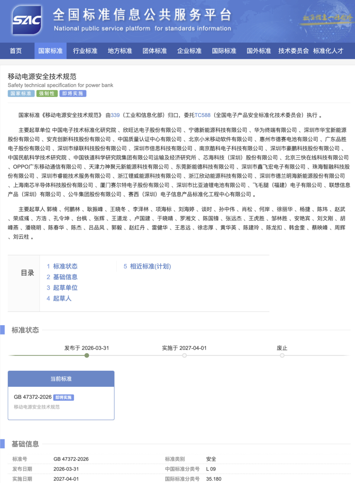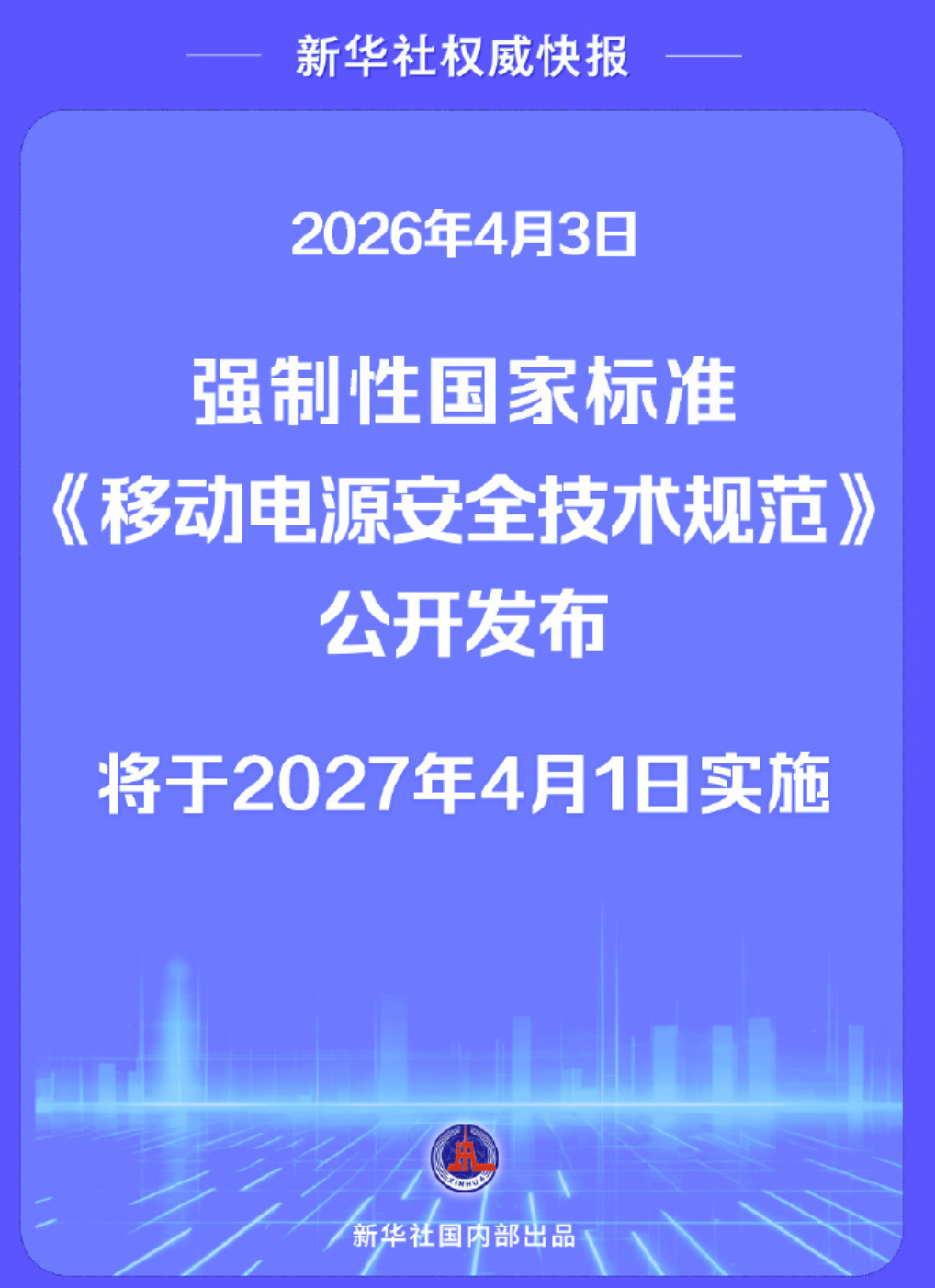 移动电源强制性国家标准发布在标准中引入针刺试验、新增循环老化方面的检测、推行产品唯一性编码管理。新标准有12个月过渡期,明年4月1日起企业必须按照新国标生产,新标准对大伙之前买的通过3C认证的充电宝不会有影响,符合标准还是能上飞机的