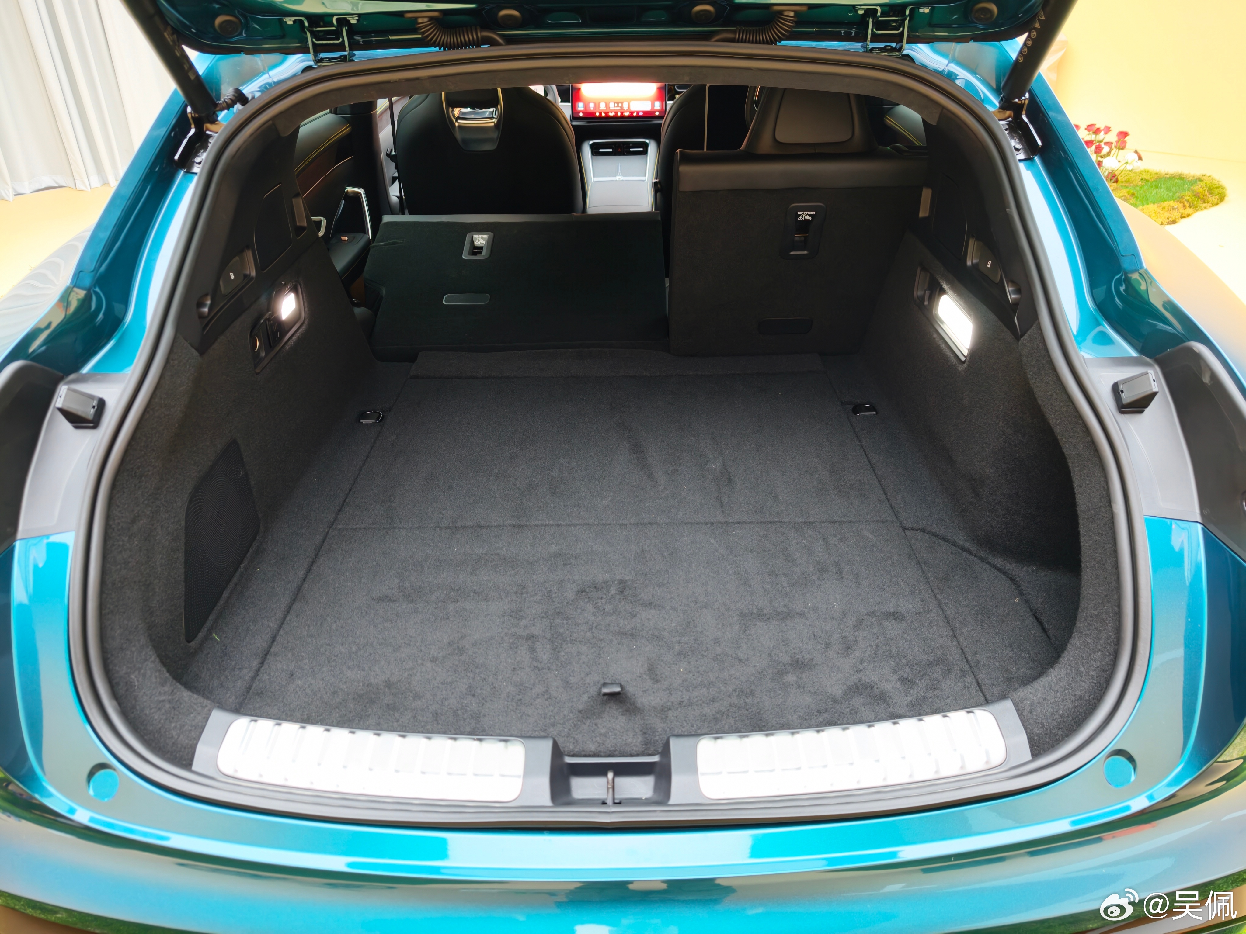跟产品经理聊了一下,先说尚界Z7的掀背。车子本身就长(5米),后备箱进深做得大,产品经理担心女性用户弯腰够行李费劲,再加上外形已经往轿跑方向走了,所以干脆彻底一点做成掀背。但这招也有代价——尾门铰链位置会吃掉一点后排头顶空间,还好实际坐起来问题不大,属于"知道有这回事但坐进去感觉不到"的程度。如果你真的很介意,你可以看看猎装版。猎装版的尾门铰链往后挪几公分,比轿跑版侵占更少。