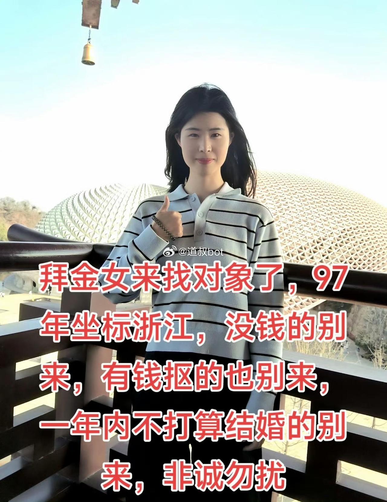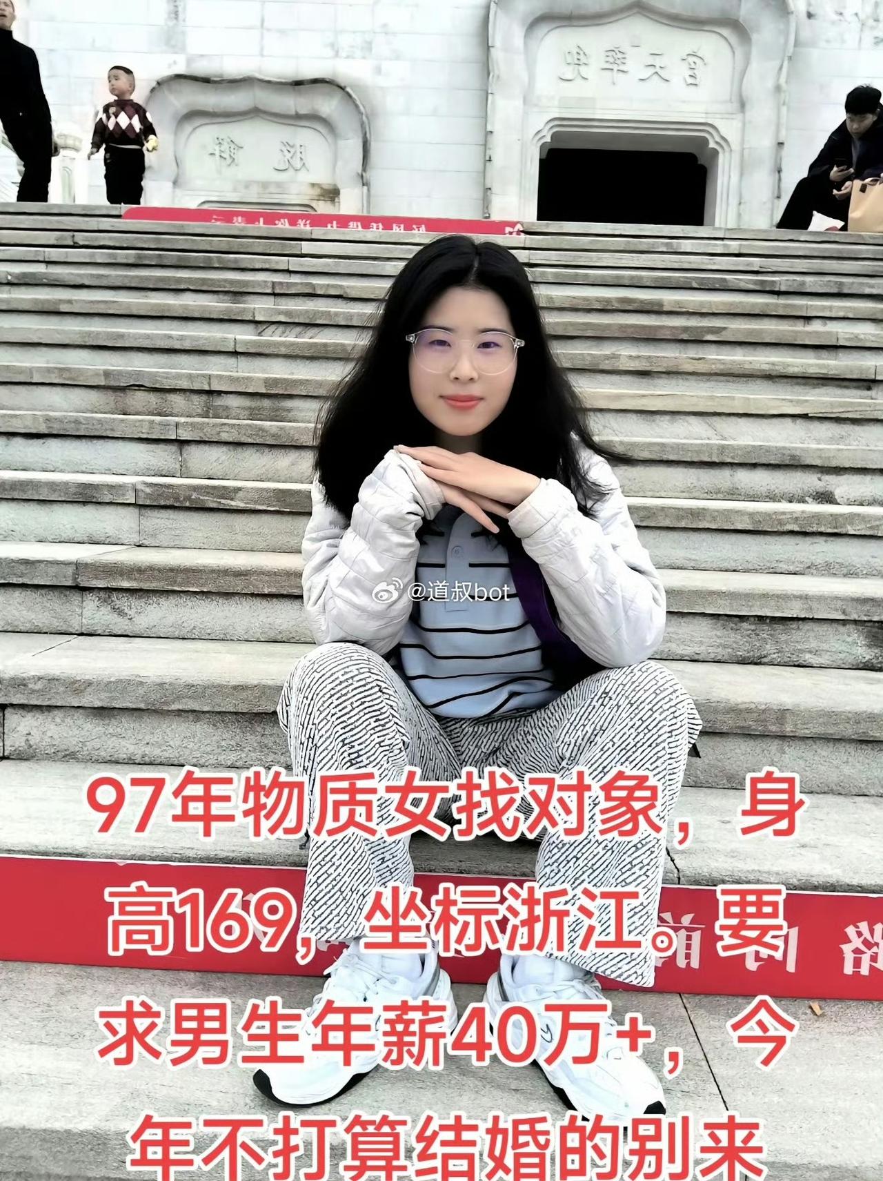 30 岁的女孩公开相亲,要求浙江人,年薪不低于 40 万。她身高一米六九,55 公斤,颜值在线,有钱的男生可以联系,有钱抠门的免谈。需要男方有房有车。提供不低于 40 万的彩礼,谈好了今年结婚。就凭女孩子这倾国倾城的容貌,应该有大把男生提钱上门提亲吧。