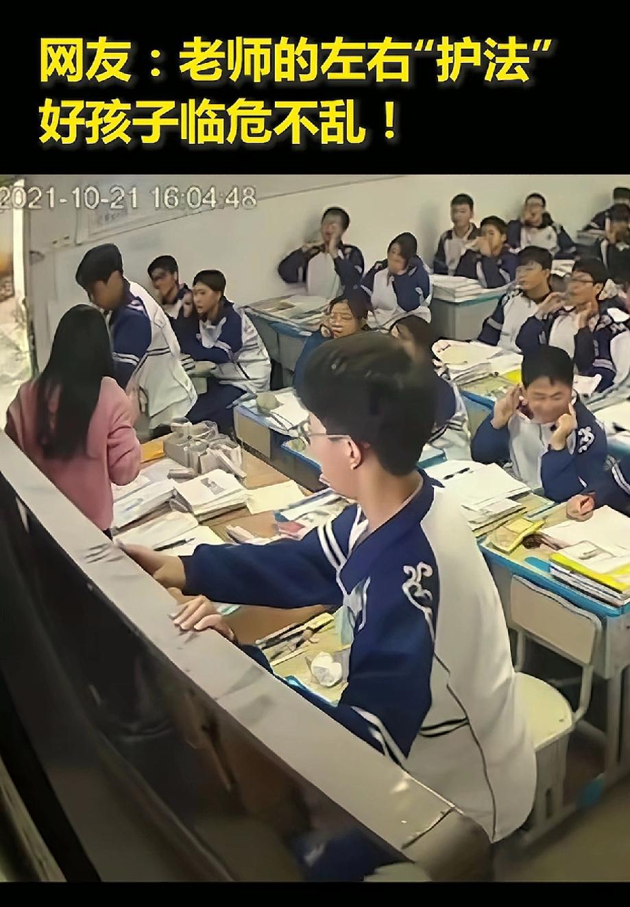 近日,一段监控视频在网络热传,画面中记录了一所高中教室内发生的惊险一幕。在正常的教学秩序中,教室前方的黑板突然整体脱落,正对着讲台上的老师砸去。千钧一发之际,坐在第一排的两名男生没有丝毫犹豫,几乎是本能地同时起身,一人一边迅速冲向老师,合力将其推开。黑板重重砸在身后的空地上,老师因学生的及时反应安然无恙。视频曝光后,网友们纷纷为这两位少年的临危不乱点赞,戏称他们是老师的“左右护法”,这种刻在骨子里的善良与担当,真的太帅了。 这短短几秒的画面,比任何说教都更具震撼力。 当意外来临,人的本能往往是趋利避害,是抱头躲避。但这两名少年的第一反应,却是推开他人。这种“反本能”的英勇,不是偶然的运气,而是长期接受良好教育、内心充满善意的自然流露。他们没有思考“会不会砸到我”,眼里只有“老师有危险”。 网友@名字太长我记不住 的评论更是让人会心一笑:“作为曾经的左护法,我表示:但凡在那两个位子上历练过,都是眼疾手快、心理素质过硬的选手!”这句调侃背后,其实藏着对第一排学生“特殊地位”的共鸣,也侧面印证了这两位少年的反应有多快——毕竟,“左护法”的位子,可不是谁都能坐的。