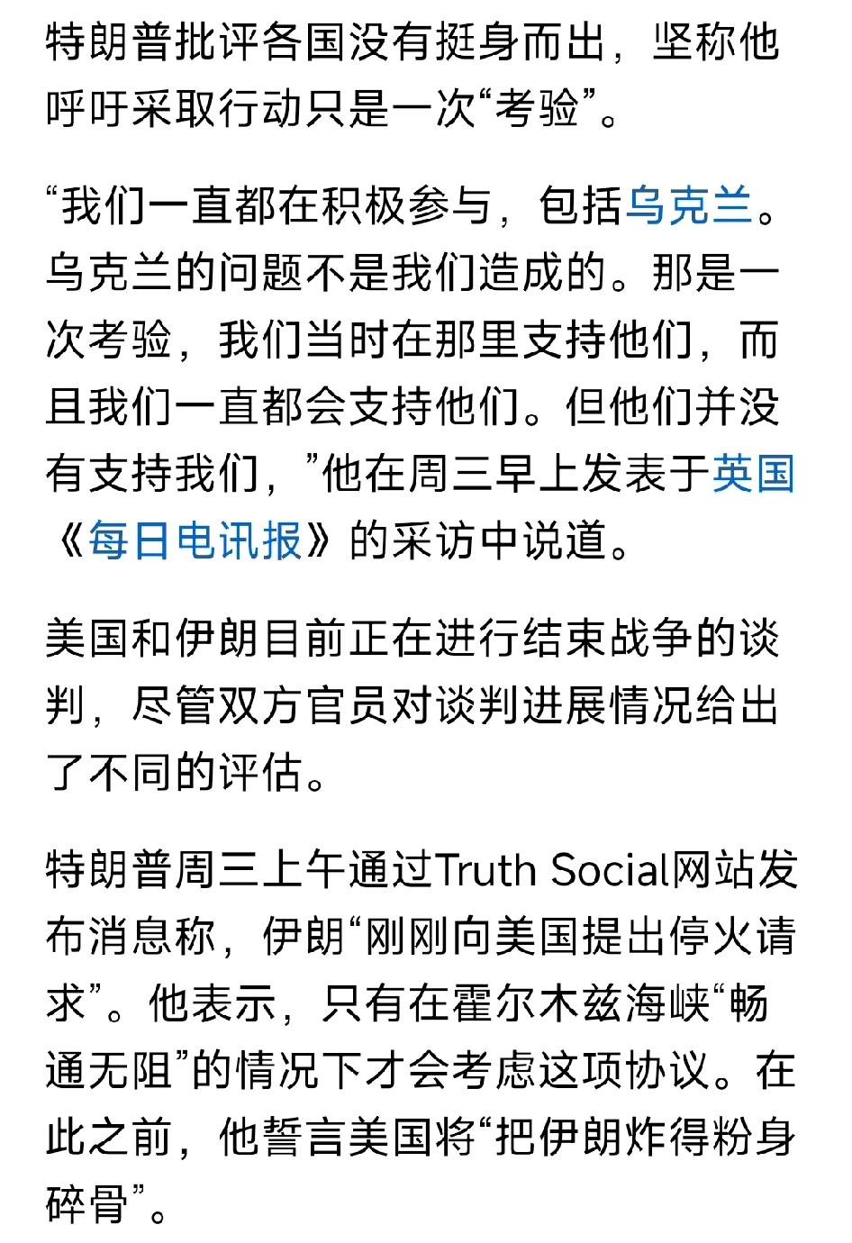 特朗普:乌克兰问题与美无关,我们支持它,它却忘恩负义!这是不是普京先生与川普先生正在星球棋盘对戏?亦真亦假,智谋棍棒,最后的结局,哥俩好?棋子隐。特朗普离被审判的时间还有两年多一点! 特朗普批评各国没有挺身而出,坚称他呼吁采取行动只是一次“考验”。我们一直都在积极参与,包括乌克兰。乌克兰的问题不是我们造成的。 其实,美欧矛盾早已不可调和,俄乌冲突就是美国算计欧洲的信号加上特朗普的极限施压,只是加速了北约的解体。 美国退出北约不是会不会的问题,是已经进入倒计时一旦分裂,全球地缘格局将彻底重构,全球也将安静。特朗普是支持俄罗斯普京的,一直在打压逼迫乌克兰出让领土。俄罗斯的命好,特朗普上台救了俄罗斯和普京。欧洲对特朗普 聊特朗普 特朗普雷人言论 特朗普争议发言 特朗普怒斥美国 特朗普自娱自乐 特朗普外交风险